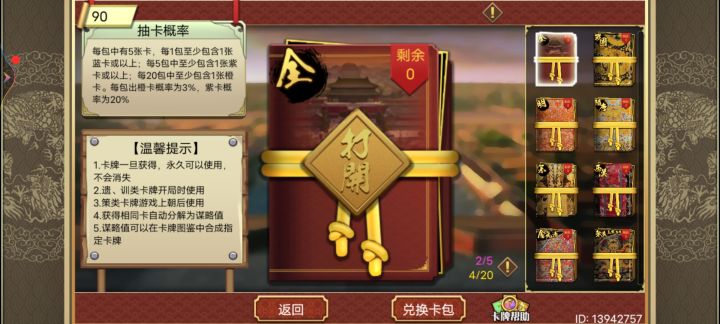 ID:13942757 我在周年庆寻宝买了两个卡包 第一开始抽的时候他告诉我数量不足然后我大退了一下回来结果发现卡包被吞了 你还不如叫bug皇帝呢😡😡😡