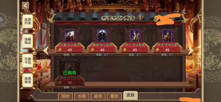这几个卡包不能显示已拥有吗?除了杨广我都有皮肤了