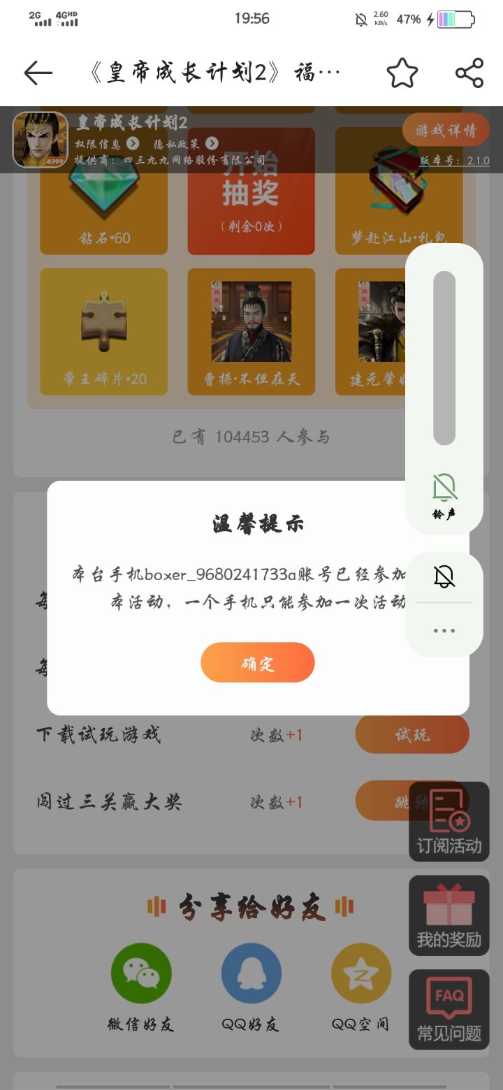 丞相辅政清晨点击,概率卡助,点击无效。重复科举卡住。一月祭祀概率卡住。重复登录游戏也会让人失去理智耐心。