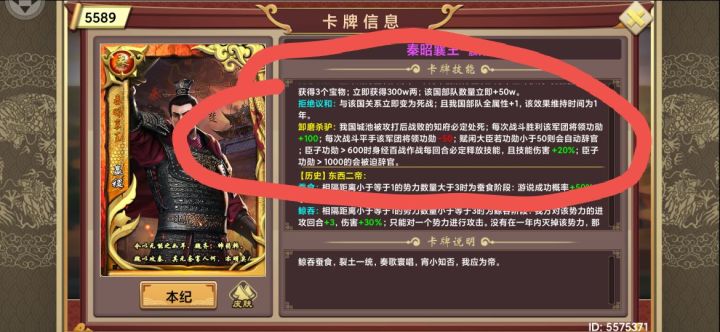 秦襄王的数据也是有毛病吧,还是官方的数据就自己写着玩,都纯粹不看了?????大于600技能100%释放,大于1000告老还乡,我白起在前线莫名其妙告老还乡,我专门叫回来看就548,最多加上前两个月打的仗,也是一输一赢,最多再加100(三月份告老回乡读档回一月,加上商鞅技能加成)就600就被告老还乡了?你们这是什么设定?官方就一直一句帝卡就是这样设定,你们是不会看自己设定的数据吗?我这个是亲自测试的,600就给我告老还乡?还是在548打赢一仗,直接翻一倍到1000去了???