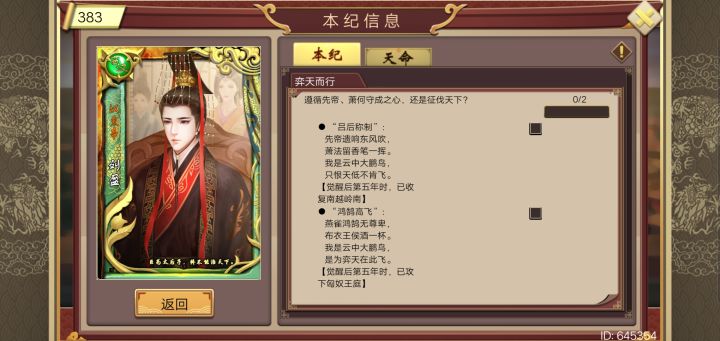 真有毒吧!我最后完成戚夫人的天命,准备一锅解锁,前两个先完成。先把鸿鹄完成,之后把吕后完成,最后完成戚夫人,完成后剧情一过,打开卡人都傻了,一天成果就没了。建议测试人员去试试,按着这个步骤,吐血,希望给个合理的解释,最起码给我恢复我的成果