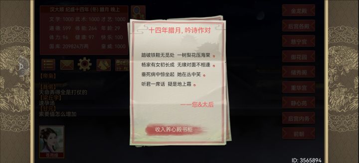 救命啊,能不能弄正确的诗词啊,之前还有正确的选项,现在连正确的都没有了。选正确的要被说没新意,选错的还会被夸皇上真棒。正确的不好吗?万一有在读书的玩家被带偏了咋办。并没有觉得乱凑诗词很有意思