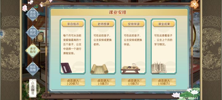三个皇子公主只能选择一个安排课程嘛,统一进行课程?不能每个皇子公主单选一个进行课程嘛?