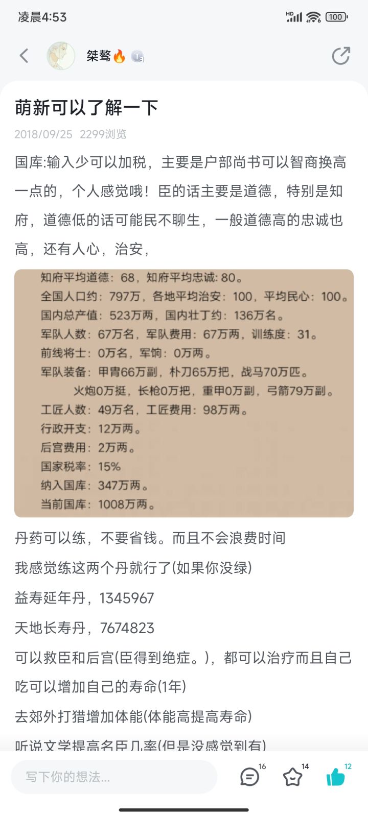 策划,你可以看看你这次的更新,真的一言难尽,统一之后治安每回合掉10,还是全国,我只服平均道德93以上,将近150座城池全名臣,可中央官员也是全神将,可是国家规模是行政规模的两倍,耗费的钱多我无所谓,但治安每回合掉10,以及换一个地方官员,朝廷稳定掉那么多,是认真的吗,聊天室里一堆人吐槽,有的人甚至20多个人没来上朝连续几个月,也没得病,只希望策划能改一下吧,这次真的比上次的军心还要那个,与其现在