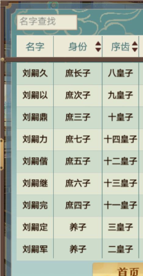 前面四年身份序齿排列顺序在第二张图,从第五年开始就变成第一张图里的情况。序齿变了我倒是能够理解,可以根据养子和皇子的年龄重新派序,但是身份变了我就不能够理解。哪个不是按照出生日期排列的吗?庶四子变成庶七子,他们又不是同一回合出生的。我很困惑不解