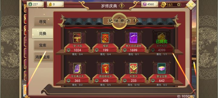 ID:13318402寻宝里显示已兑完,卡牌里没有出bug了