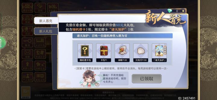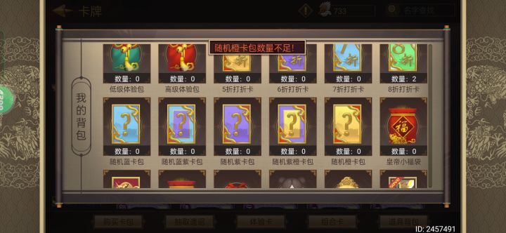 随机橙卡包被吃了😅开始有显示,点击领取,显示错误然后我退出重登就没了,看了一下我的卡组啥都没有,谋略也没加2457491