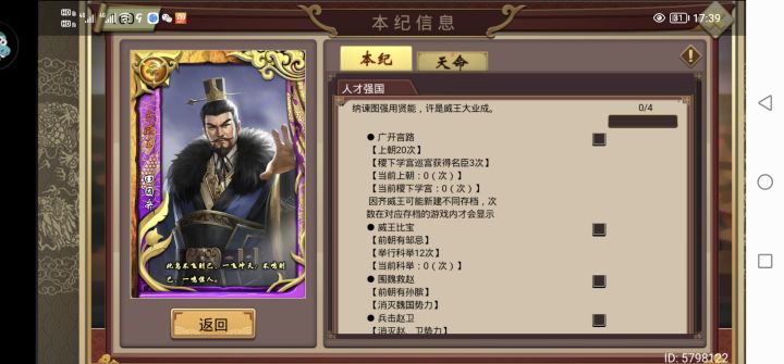 各位大佬帮帮忙,齐威王本纪为什么没有显示完成?事情经过是这样的,开了一个历史档却发现本纪没有动静。有大佬知道是什么原因吗?