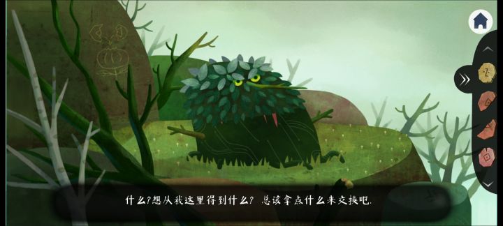 现在也轮到我做攻略了(握拳)0.序章1.跟随新手指导,摘取果实,用果实砸蛇,触发小鸟对话2.回家,往右拖动,跟爸爸对话3.进屋,往右拖动,在蓝色衣柜旁拾取水桶4.出屋,往左拖动,把水桶放到井绳上,多次点击把手打水BGM骤变,往右拖动,爸爸死了!5.点击爸爸,触发小鸟对话,“跟着雄鹿走”1.秋季1.注意树上的组合图案(1.1),点击长角的雄鹿白影,只能点击雄鹿,点击雌鹿次数会重置2