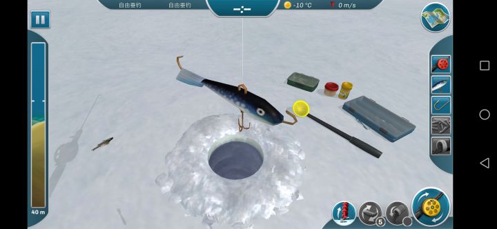首先,挖个洞(这个总不可能不会吧)上饵进水(不用饵也行)按住屏幕左右搓一搓,然后停住放手观察鱼竿是否下沉或者水面有没有波纹(注,搓的时候的波纹不算,放手时有一定惯性,鱼竿会抖动一下,也不要被迷惑了)一旦动了,右下角拉钩如果是很小的鱼就不会有挣扎环节(或者你把挣扎给关了),坐等上来就行,大鱼就得一点一点博弈了按住可以收线,但要保持张力条在中间附近。鱼挣扎的越厉害,张力条变化速度越快。