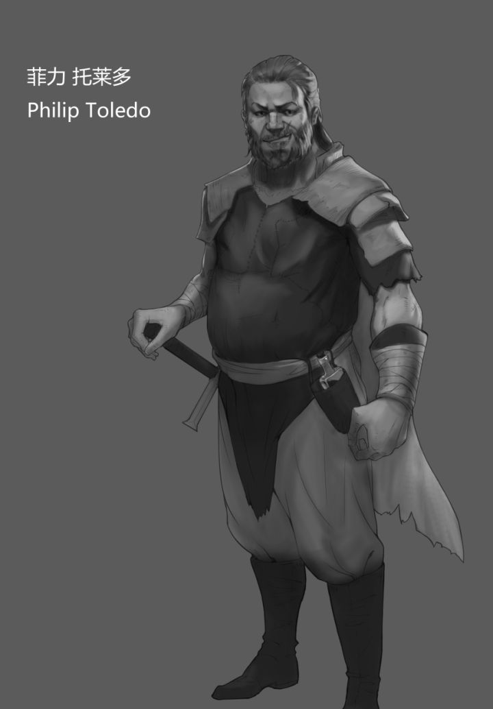中文名:菲力 托莱多英文名:Philip Toledo年龄:35左右性别:男详细描述:沙特尔城的临时头领,拥有一对儿女。退役军人,身体结实并且强壮,在这个末世甚至有些发福,嗜酒凶残,平时喜欢殴打女仆奥莉薇,不畏强权(表示天使军算个吊,劳资一样砍),心思颇为精明,懂得利用人,隐藏儿女失踪和妻子死亡的真相,并用情报为报酬委托约瑟一行,偏爱儿子。吹嘘自己参加了派尔狂欢,杀人如麻,其实并没有参与,