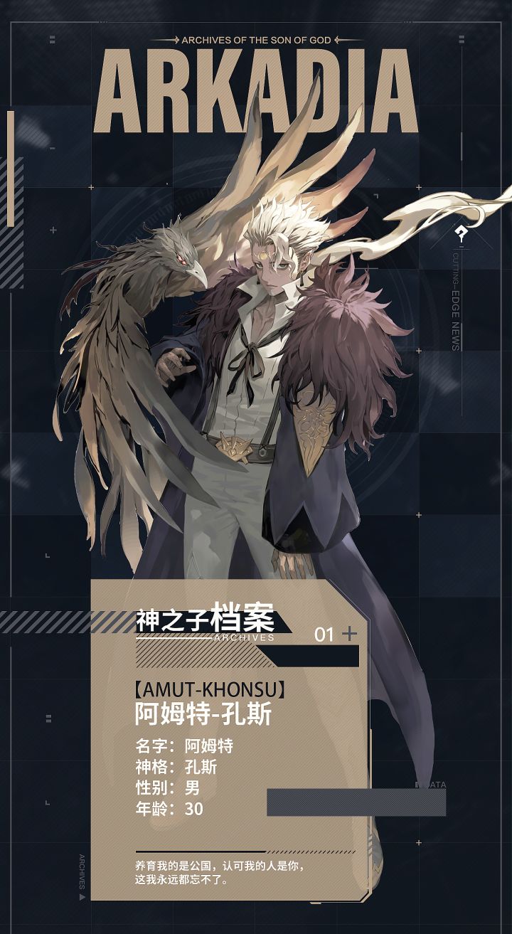 人狠话不多,阿蒂这就把新角色给大家变出来,请看介绍——一、角色故事自幼就被母亲遗弃的阿姆特,是一个吃着百家饭长大的孩子。他天赋异禀,很年幼的时候就觉醒了月神孔斯的神格之力。阿姆特虽然寡言少语,但他一直在观察,他清晰的找到了自己在力量谱系上的位置。他为弱者们养育,更在崭露头角之后,被送去城外的天谴荒原,与被公国遗弃的流民一起。在这里被亡灵军团侵袭之时,他运用了自身的神之子力量,给流民们赋予堕