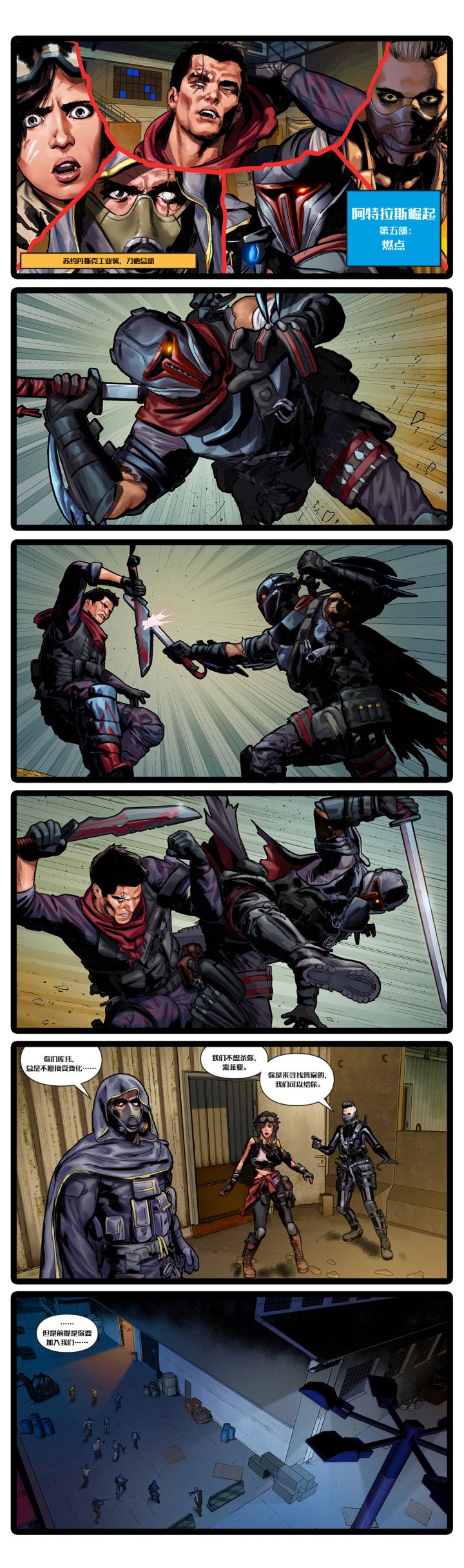 外部势力的介入使得黑花公司的架构岌岌可危。对他们来说,这将是一场严峻的战斗... 戮从内部事先处理掉黑花公司的安全控制室,魁九率领阿特拉斯黑色行动队顺利攻入中庭... 刀剑之下的战斗本应以魁九的胜利落下帷幕,但雀鹰们的突入却将整个局势逆转。在击退魁九后,雀鹰也缓缓说了此行的目的...
