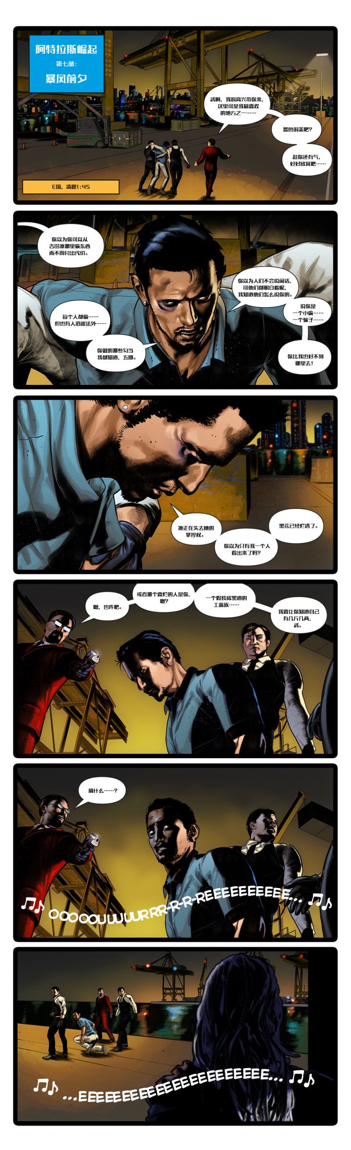 父母理念冲突所带来的争吵让索菲亚感到分外头疼,眼前的温情一幕变成了圣殿骑士与女爵持枪对峙... 夜幕的街道下,作为首领的刀疤如同挡箭牌一般绑在装甲卡车前端。圣殿骑士一家三口拿他为人质开始突围... 索菲亚从圣殿骑士口中知晓了他们被追击的原因,库托家族与“通天团”的恩怨一直延续至今... 爱德华决定将索菲亚带回库托家族几个世纪以来的藏身之所,而这里也存放着通天团最价值连城的宝藏——传说中的圣殿