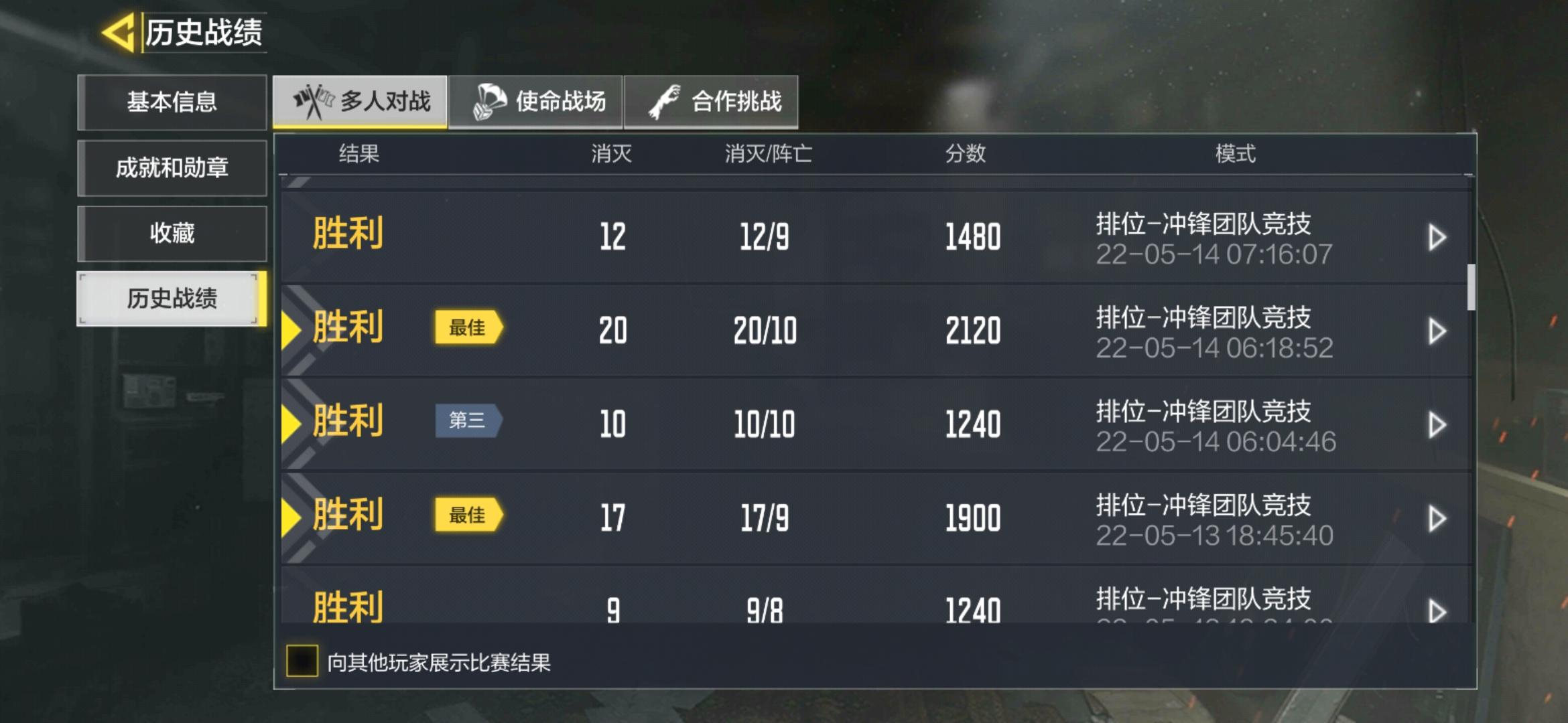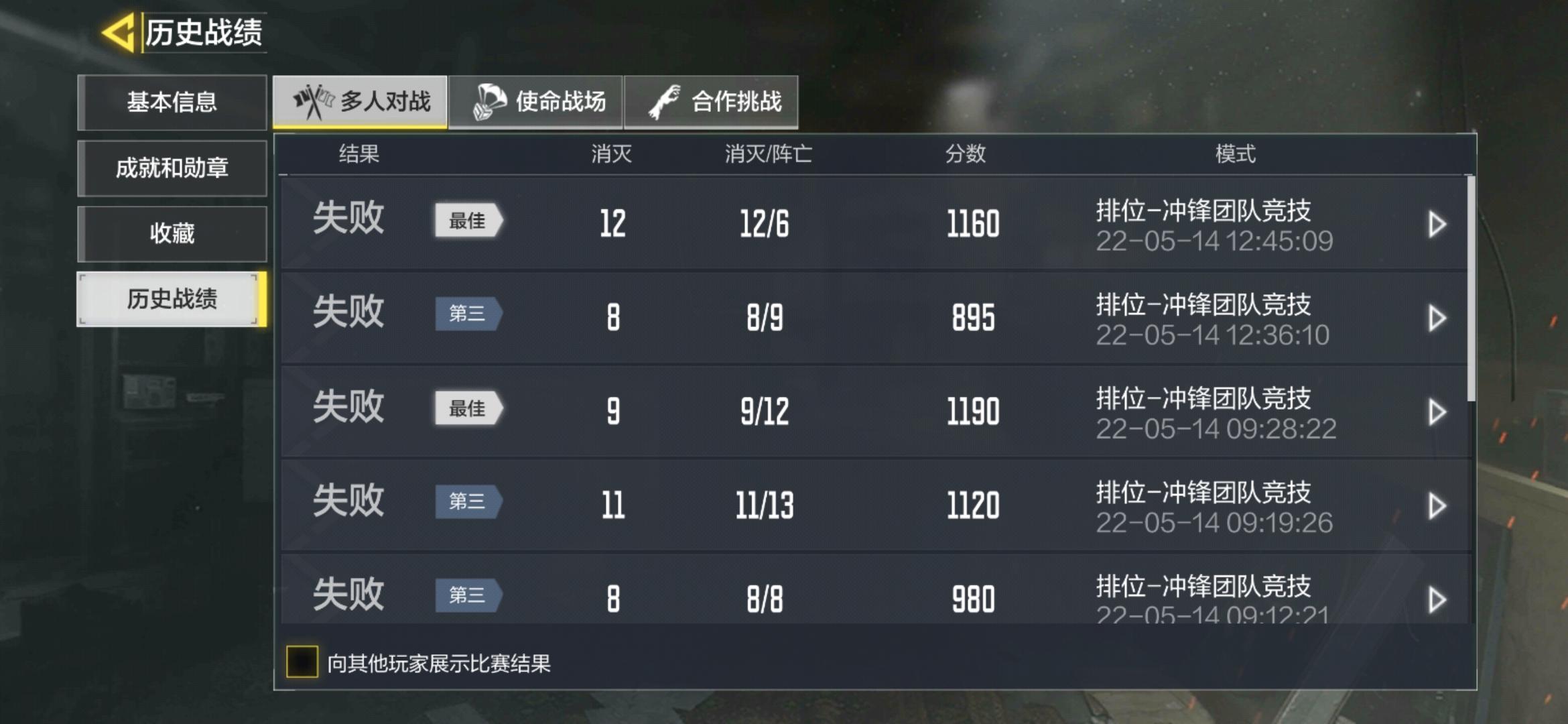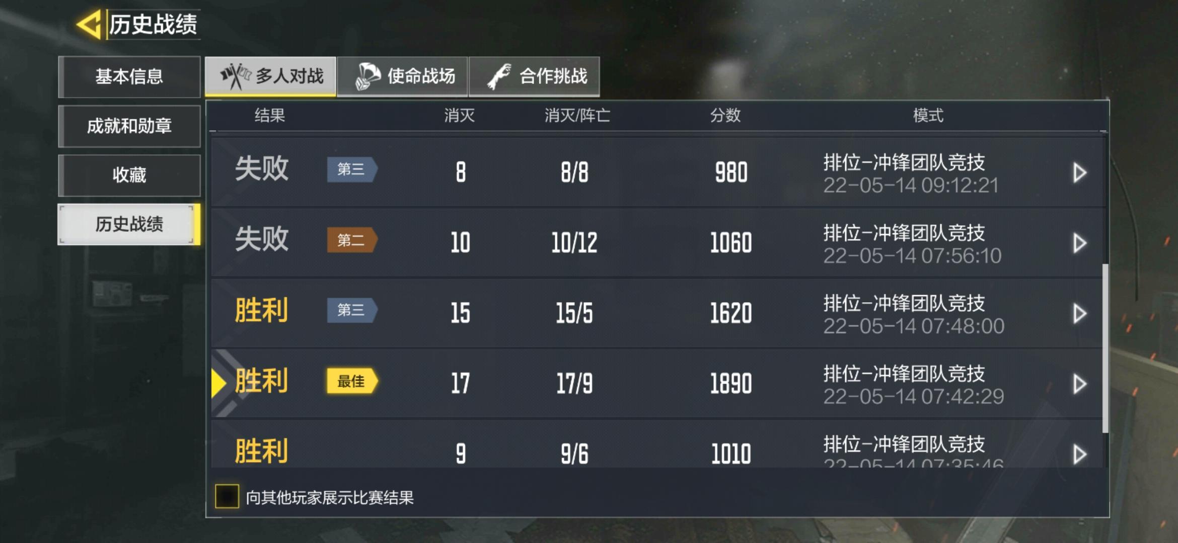 我真的不想说使命,可是真的让我失望了。先是人人都说的匹配机制,我尽力打了没赢,当了败方MVP,没事尽力了,然后下一把队友又菜又坑打不过就退,然后下一把又给我来这些很菜的人,只后连跪。再说队友退了,就给一个宝箱开出来的全是经验卡,输了又掉分,反而中途进入的不掉分。真的能不能改一下