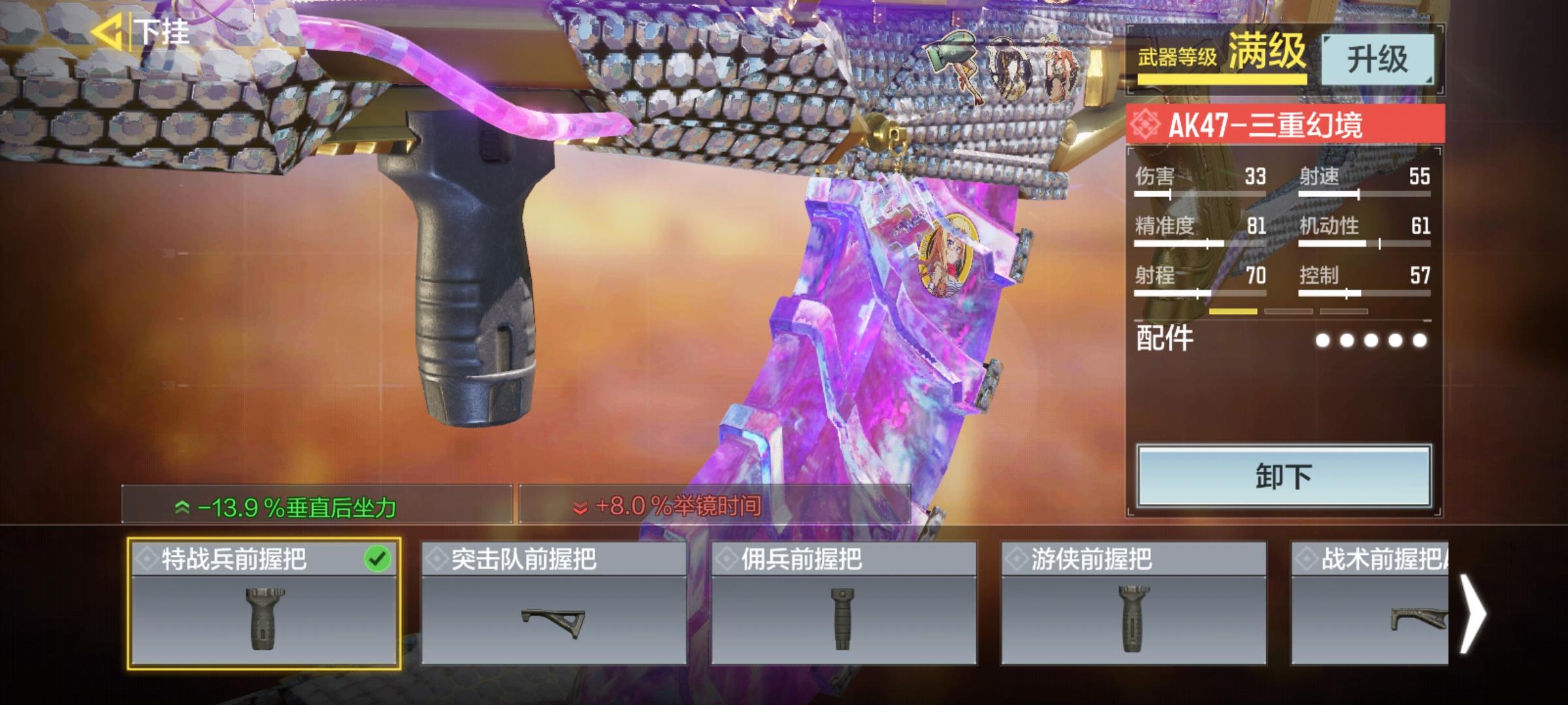 。。。这握把就不能出个皮肤吗~加成属性特别优异很违和的好吗。。。