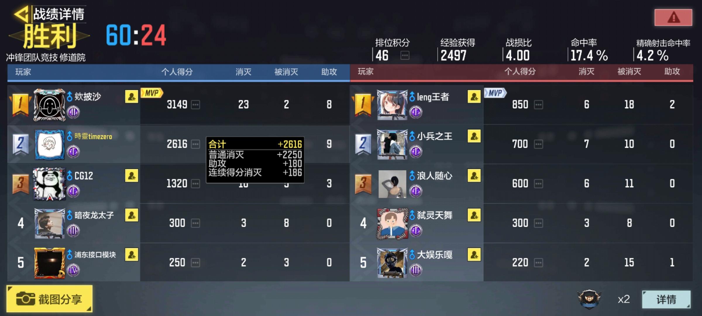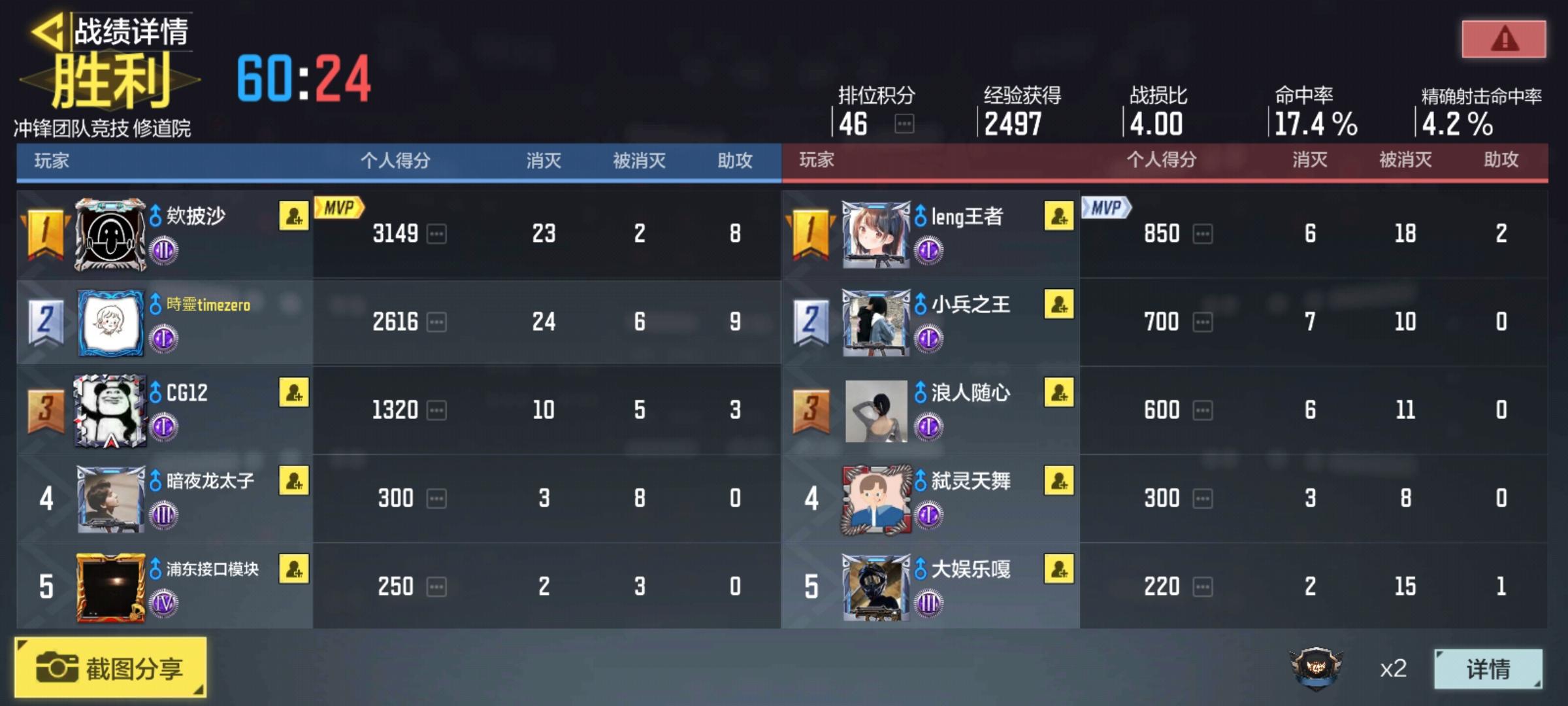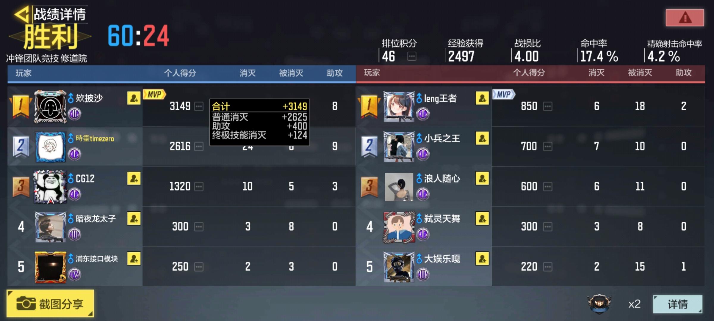 充了钱就是不一样,直接把我最佳给搞没了,排位分还卡我六分,真的看到这样的结果很让人难受,说我杀的人杀,或者助攻没他多的我多不会这样难受。