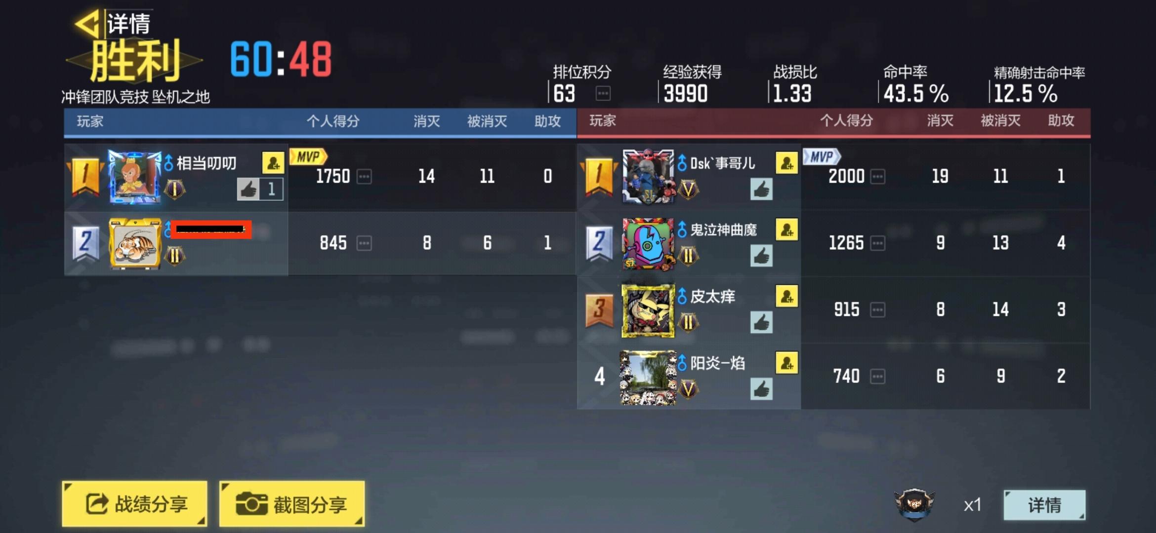 这都是些什么神仙队友,一个玩据点争夺不占点,一个玩到下半场明明还有16个人头的优势居然退场😒😓😓😓😓玩得心累啊。。。