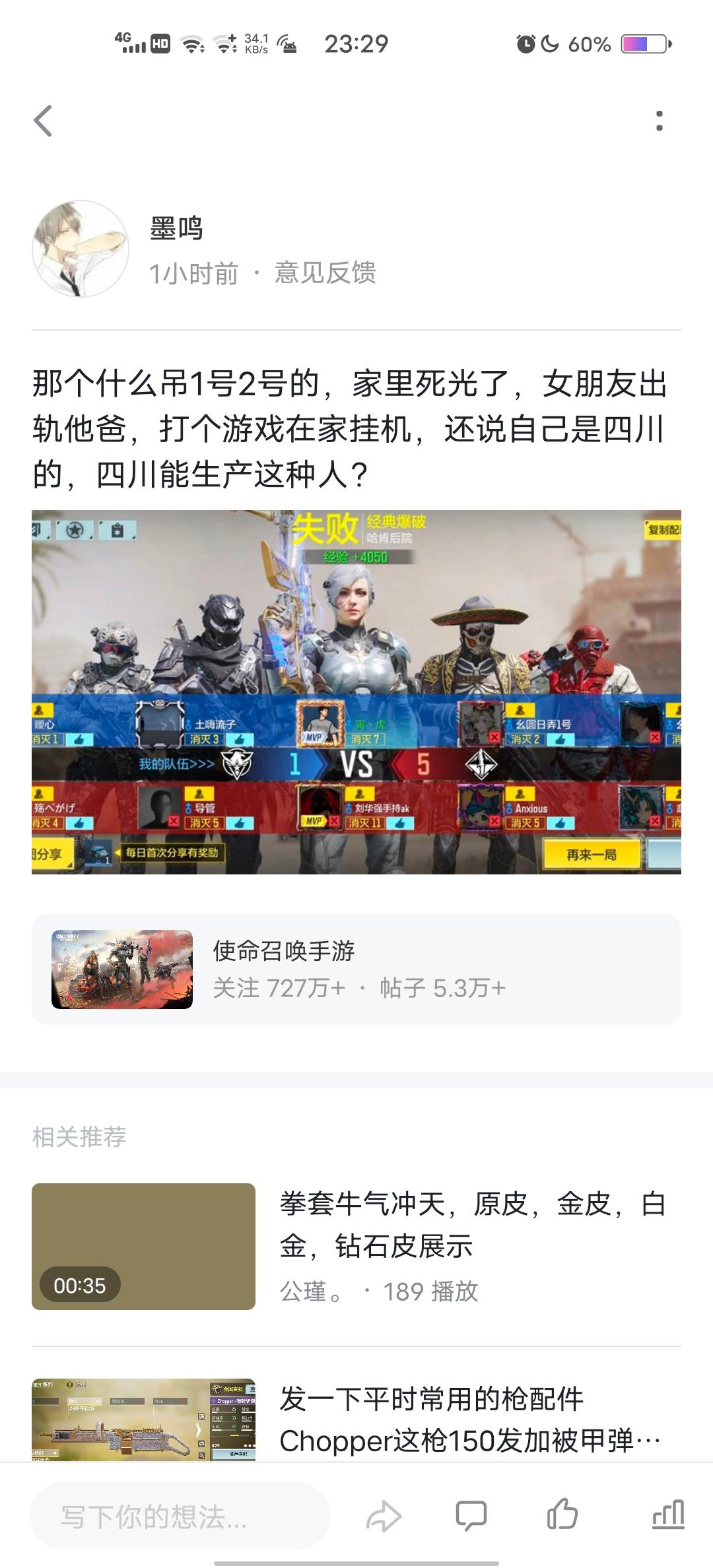 你要说我菜吧。唉!我运气还不错,全程野排总能赢。也打过稍微高端点的局(因为比较菜不怎么玩爆破和热点,玩的都是冲锋)队友也都是匹配的,大多都很素质。平时我坑了队友也会说抱歉。希望官方可以加强管理玩家游戏行为,有些人吧战绩不咋滴还喜欢码字,他还不开麦有点搞心态最过分的遇到两个组队的,其中一个战绩0-16-0,另外一个也是负战绩。我开麦说菜就别送了,高端局练喷子(就跟王者巅峰赛练英雄差不多)不太好吧,就被两个人真实了
