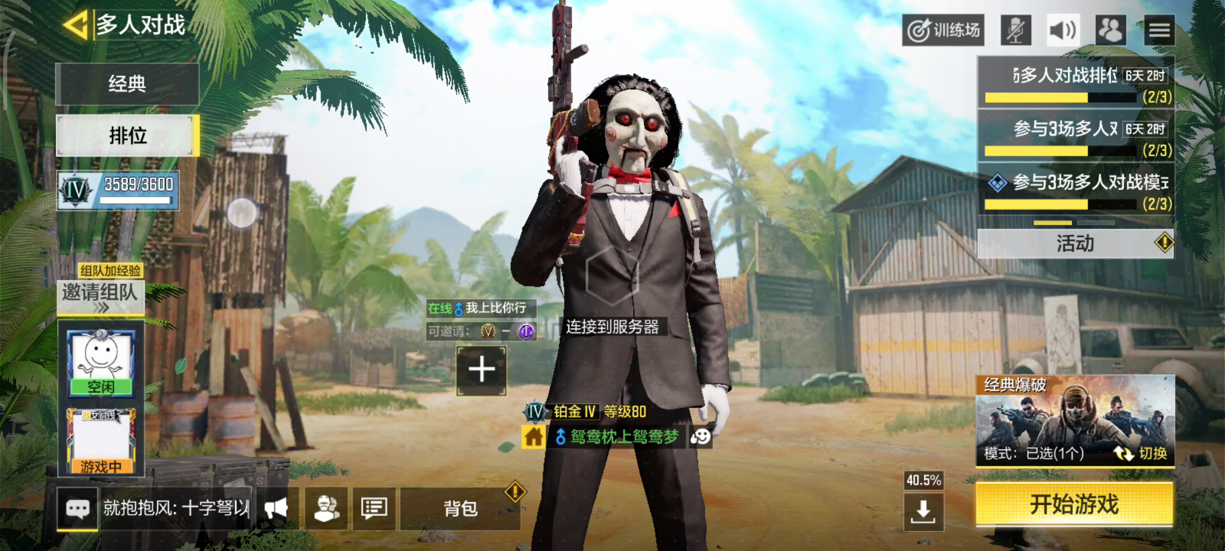 官方修一下bug能死?每次打开都这样,还要重启游戏才能玩,这次更离谱,打完一把打不了了,还要我重启游戏?客服端现在这么卡不知道修一下?每次换道具窗口都要弹2次,进活动点一下转圈一次,怎么的,只管出枪械皮肤不管客户端卡不卡,这能有新人加入才怪。