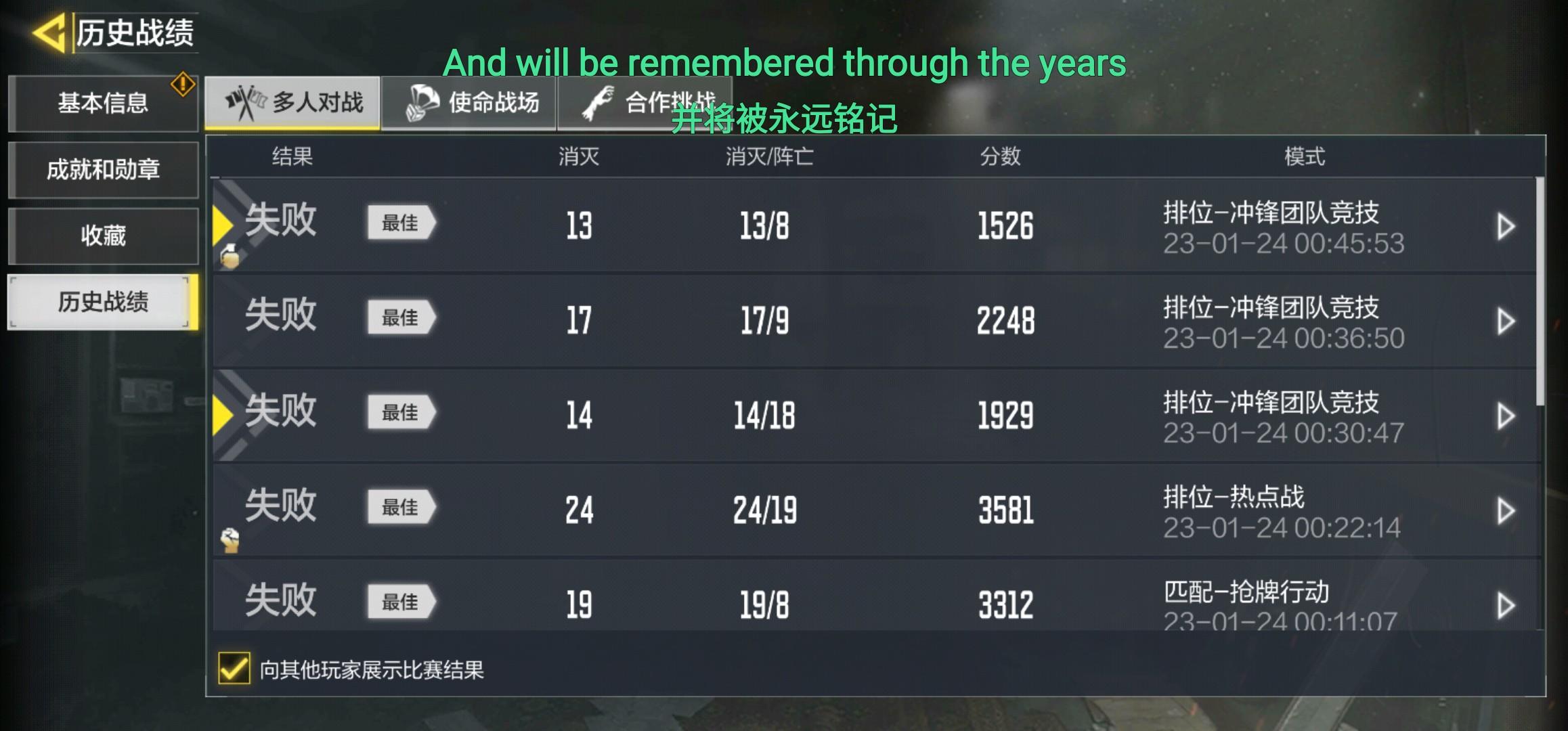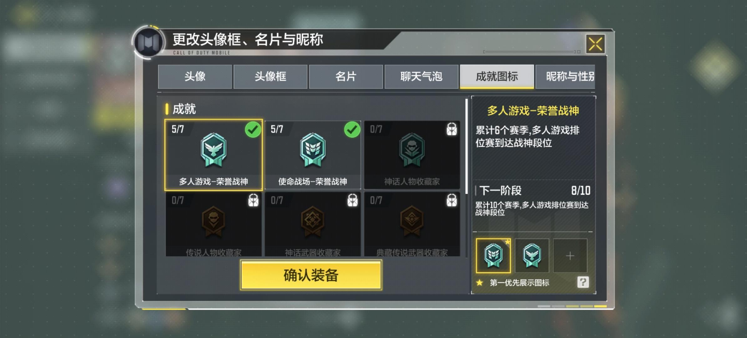 BUG希望官方修复一下这是荣誉很重要,1.战队里显示是多人传奇实际上我钻五;2.个人信息显示紫标8次及以上战神我这点进去就是5次退出来又恢复正常(成就图标作为新的目标却与实际数量严重不符合不管是战神标数量还是传奇标数量都不符合我想问问这标到底算什么?)