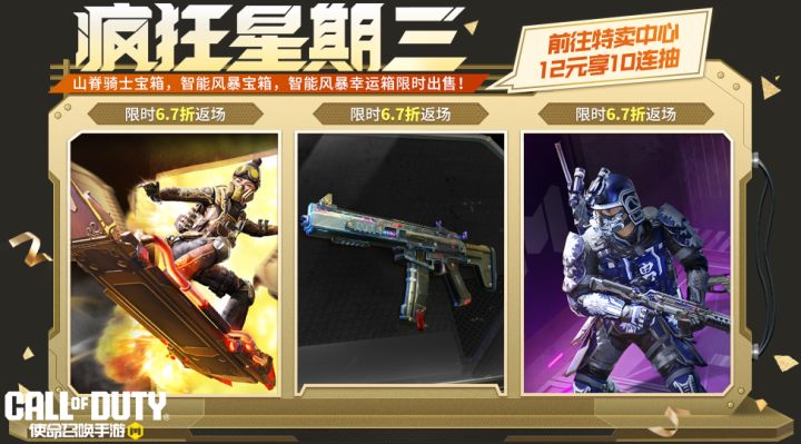 一身蓝色高科技铠甲还会害怕“老六”的偷袭吗?10月8日(本周三),本次疯狂星期三返场的三个高人气宝箱分别是日暮时分宝箱、铠甲武士宝箱、碧蓝之怒幸运箱。疯狂星期三活动期间,战士们将享受6.7折的超值福利优惠。本次返场的三个宝箱各拥有一次特惠十连抽体验,战士们前往“特卖中心”,花费12软妹币即可十连抽一次!日暮时分宝箱日暮时分,正是狩猎的绝佳时机,这次也不例外!罗兹-日暮时分从黑暗中走来,