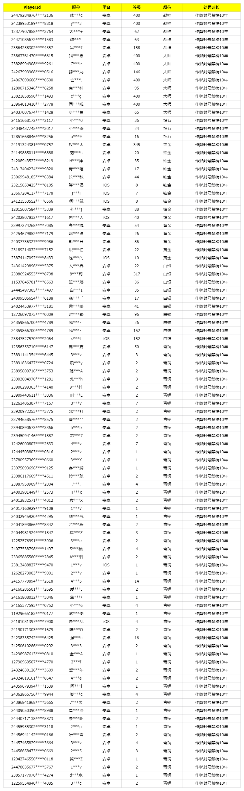 《使命召唤手游》1月16日安全处罚公告