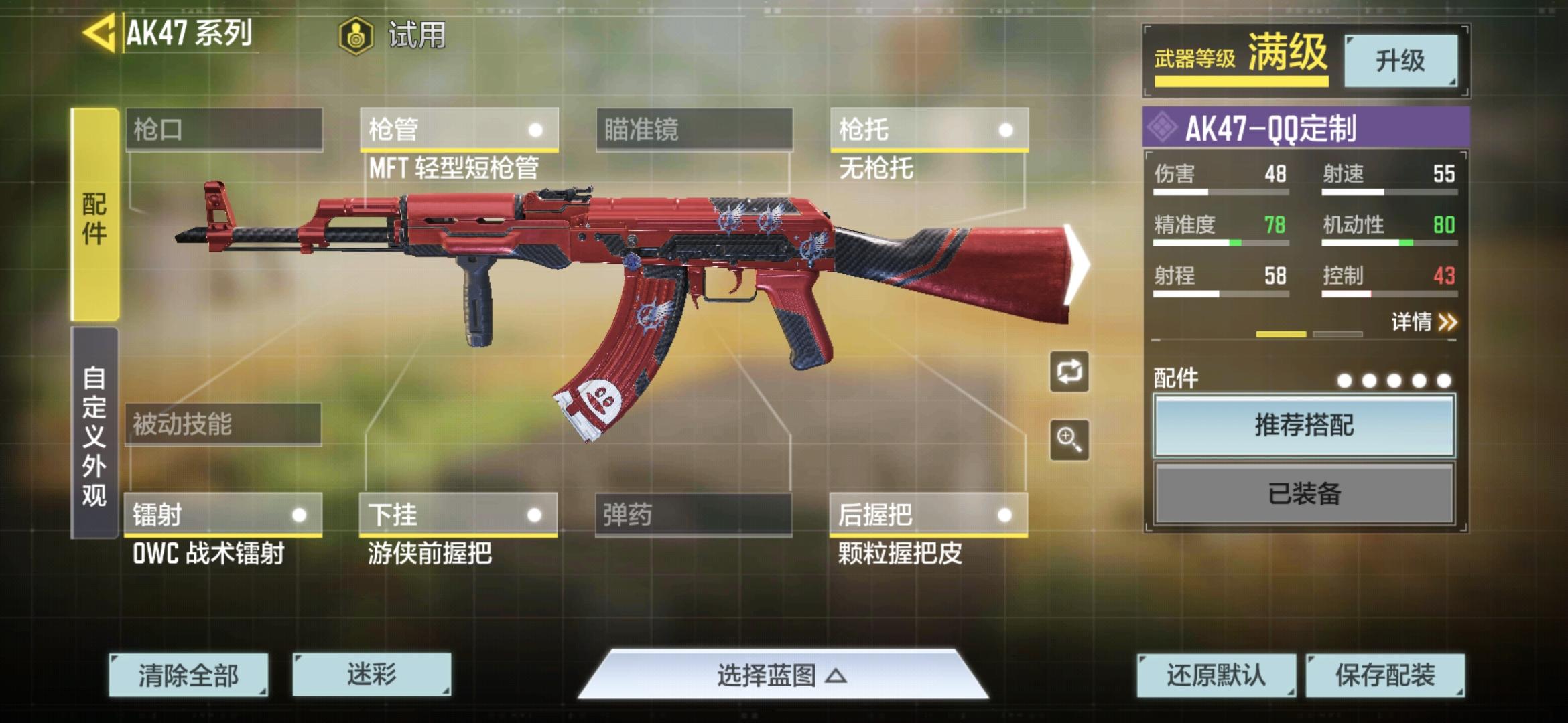 以下加配件的AK适用于中近做战。秒开镜。。。再加个轻装上阵芯片,比拿刀跑的还快。比较适合突击