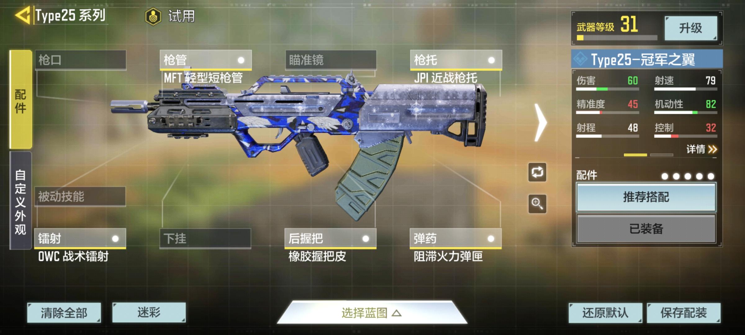 推荐扩容,提高输出,避免频繁换弹,提升生存能力。穿甲弹,避免了对掩体后敌人乏力输出,且能对面常规点位进行穿透,提升队伍胜率枪托,更加灵活的与敌人对枪及走位,更加有效的击败敌人【普通版】初始伤害33(39)、中距离伤害33(39)、最小伤害24(28)【消音器】初始伤害33(39)、中距离伤害33(39)、最小伤害24(28)【消焰器】初始伤害33(39)、中距离伤害33(39)、最小伤害