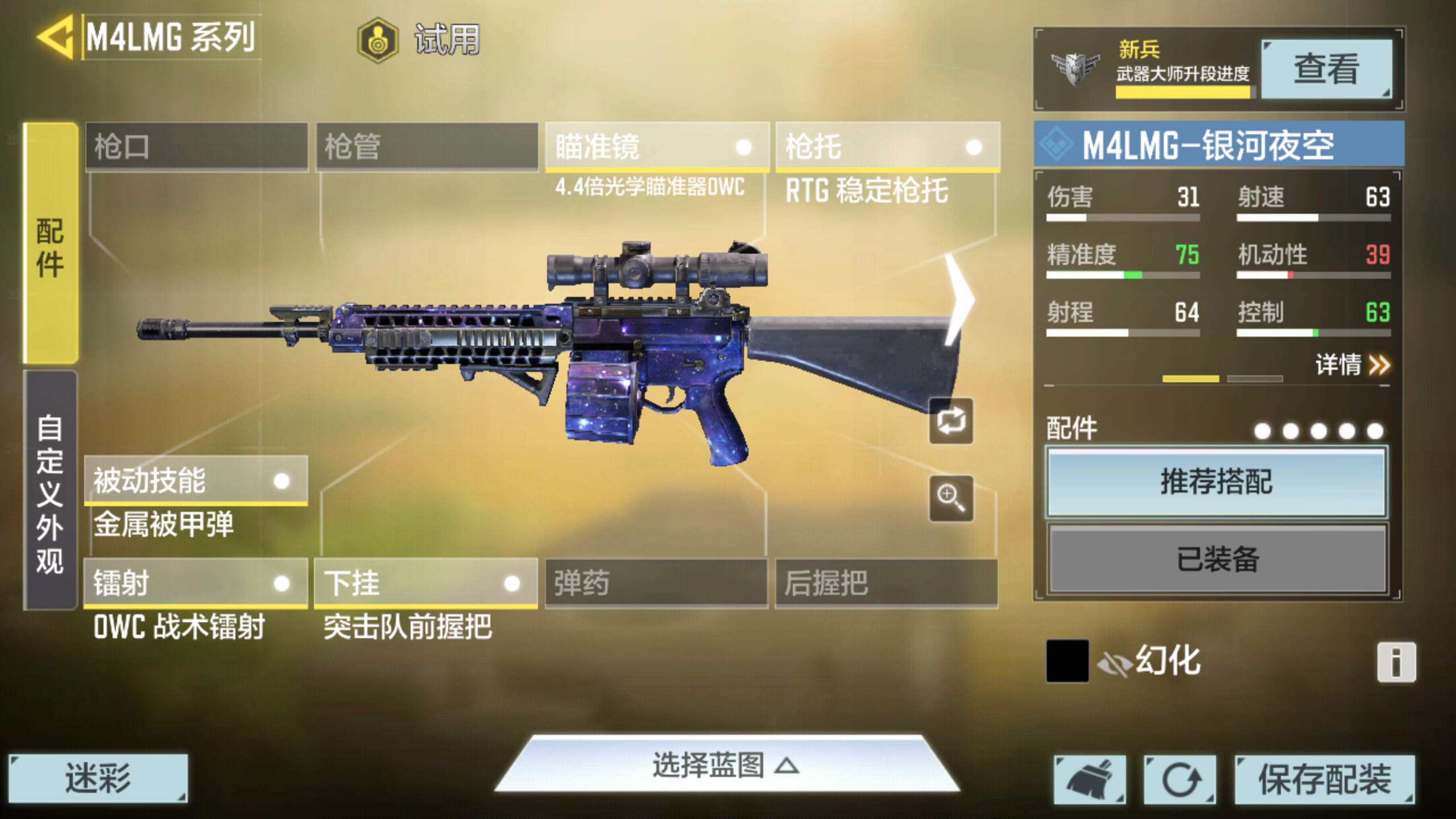 额,大家好啊。我来氵了。今天我们来看看ICR突击步枪。首先我们来看面板数据。这支枪的各项数据还是都不错的。大家可以发现这把枪的后座力和弹道偏移都特别小。适合新手使用。下面给大家推荐一下配件。如果你愿意你可以拆掉瞄具。owc镭射是一款万能配件,可以装在各种枪上。可以根据自己的需要和喜好来调整一下。该枪在5米和10米状态下命中头部伤害30其他部位为25。20米30米和40米的时候则分别为26和2