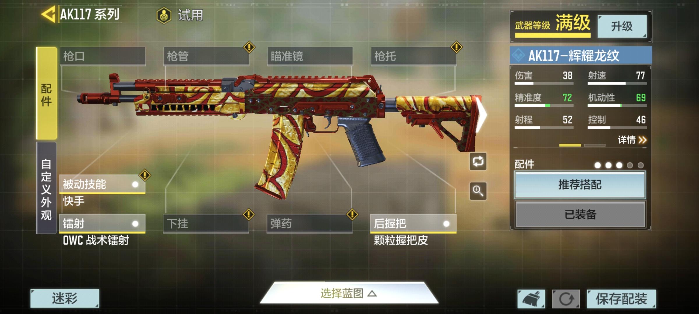 我有一个大胆的想法,之前我发现mk2的外勤特务握把是mk2经常用到的配件,而远古神迹里并没有外勤特务握把的专属配件皮肤,配起来整体会感觉特别别扭,握把部分显得和整体格格不入的感觉【如下图】。所以官方是否可以试着做出外勤特务握把的远古神迹专属皮肤呢?希望国服官方能尝试一下。