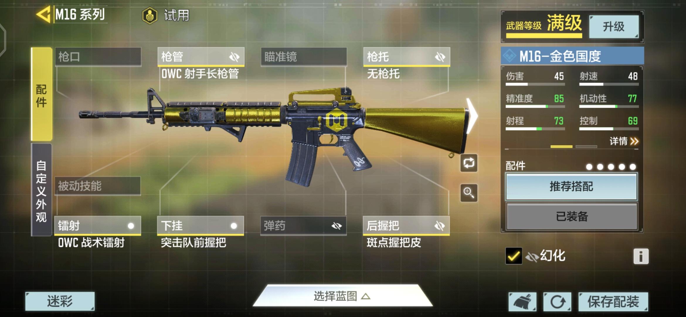 我也算菜的,不是枪抖,是我手抖拉不动枪 我的配置,爆破把后握把换成弹夹即可另外记得把一键开镜立即开火给关了不适合m16这种连发枪最后一波你们应该也看到了,一梭子把人秒了