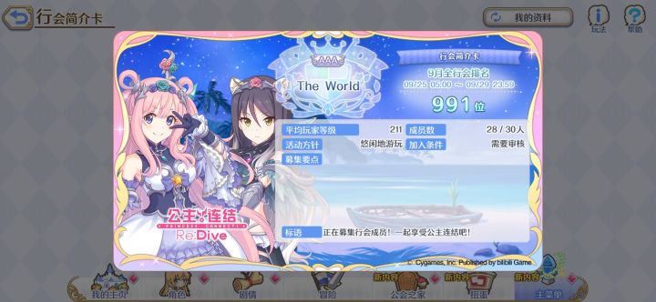 b服公会:the world档位:1200(上期991)现缺2人要求:每天自理三刀,不强求刀伤和box。强制要求加群,工会战前和期间多看群,会长会在群里偶尔分享角色养成攻略,有什么疑问都可以直接在群里问。群内和谐友爱,不限制其他游戏讨论交流
