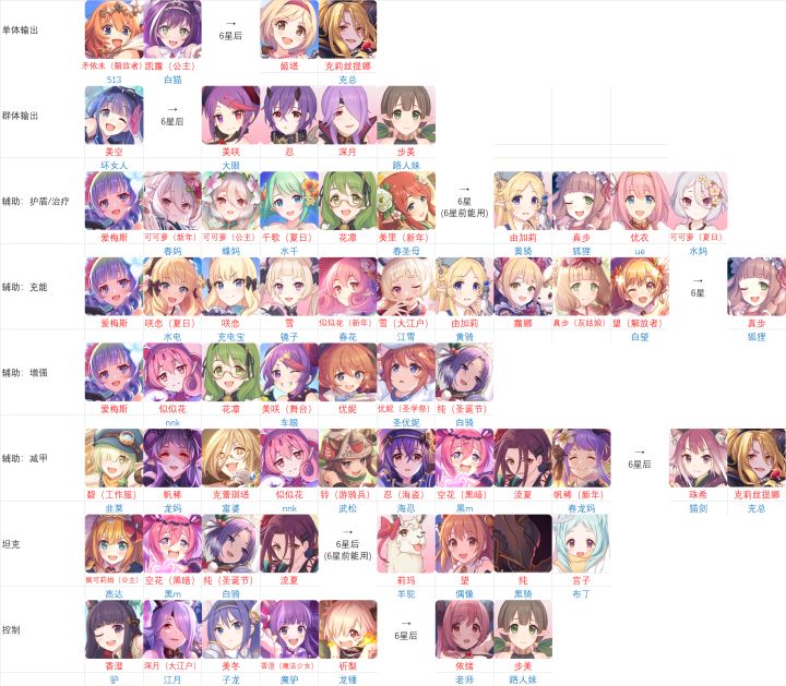 初始号选择:首先我给大家介绍一下目前常用的限定角色以及对于萌新来说他们的强度。1.似似花:有很多老玩家会叫她448,fes角色。公会战 推图jjc都有很高的登场率。在我的理解里属于萌新必备的t1角色。2.克里斯蒂娜:简称克总,fes角色。克总在没开专的时候稍微低谷了一段时间。但是现在开专之后ub频率很高大大的提升了输出。在推图jjc公会战拥有很高登场率。也是属于t1级别的角色。3.公主佩可