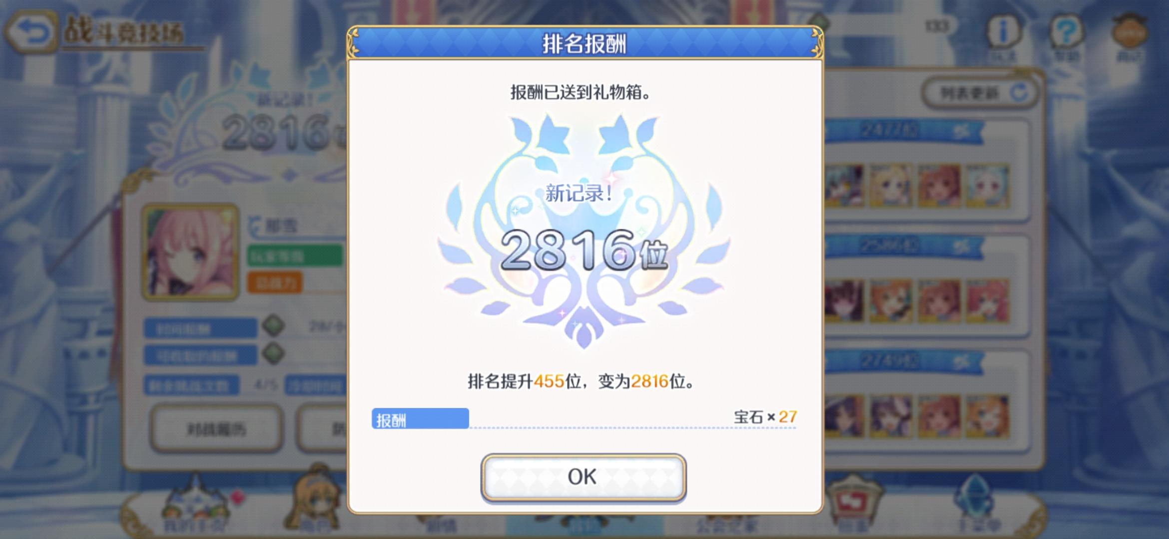 竞技场升排名没有给宝石