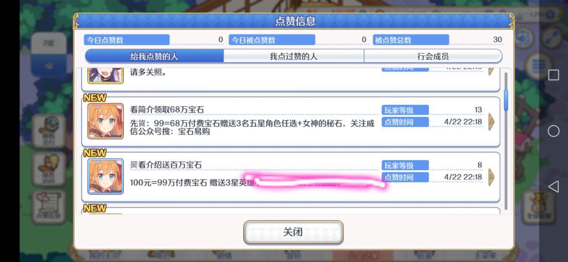 这几天开学了都没有上游戏,然后今天上线看公会之家里22个人给我点赞,很多都是rmb交易的人官方要不要管管,明天上学晚安