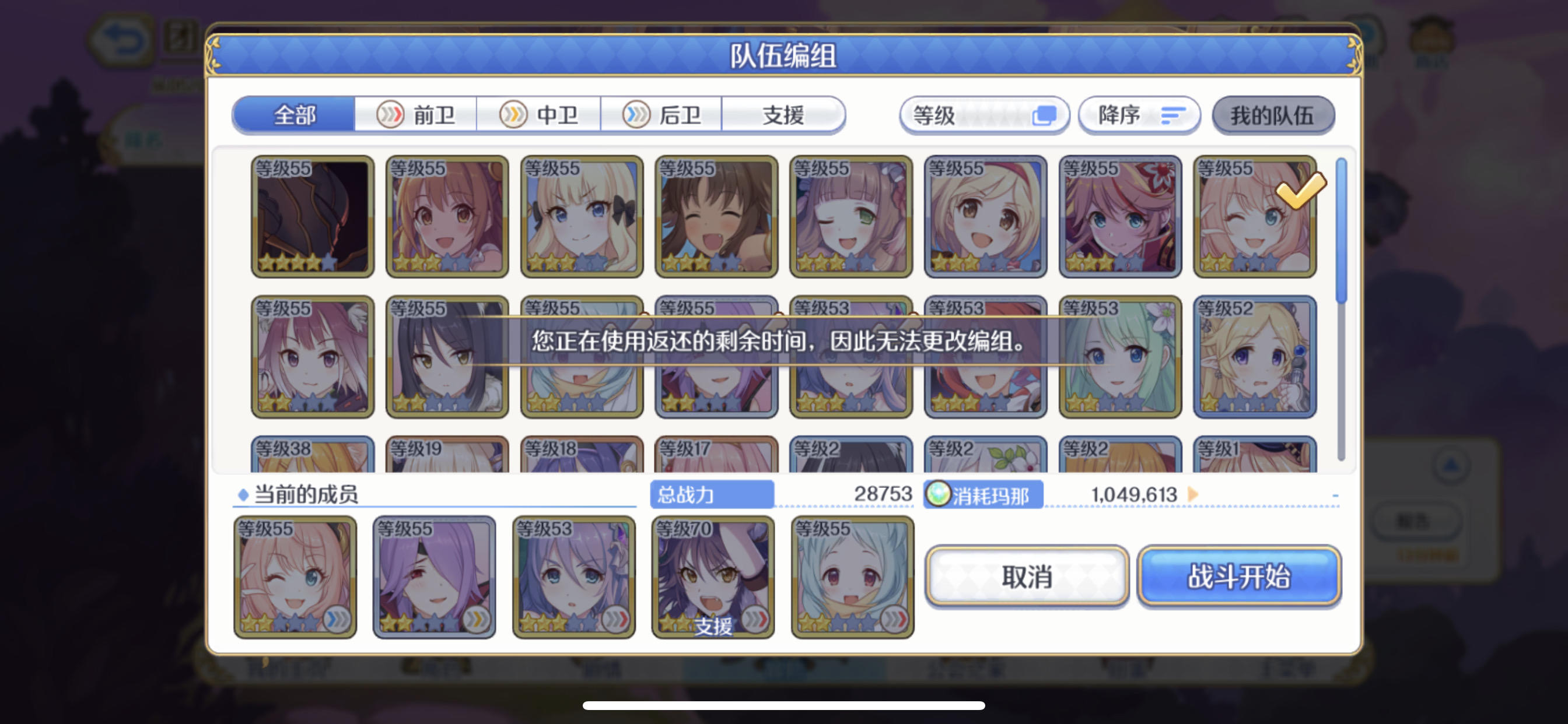 把工会战老一最后一刀打死,然后出了bug,一直显示返回的剩余时间,等了几个小时还没好,如图: