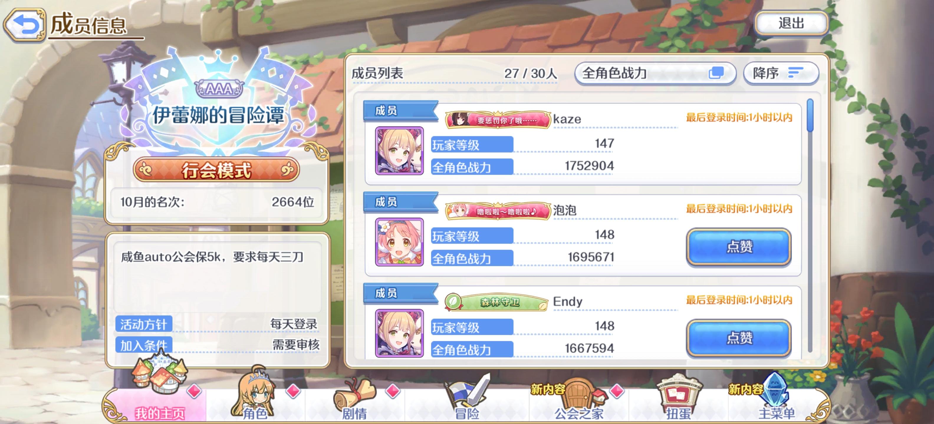 本人休闲党找个保5k公会,可以auto不用叫刀排刀的,以下是box练度。要求高的公会就算了哈