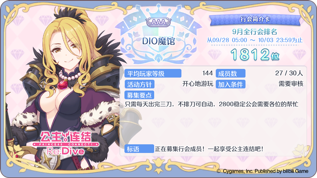 休闲工会招人目标:保2800这期由于人不齐大概2900+无要求,能出满刀就行欢迎打算长期玩的新人和回坑玩家加入群号:189661309