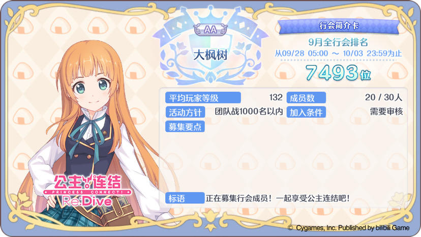 公会:从零开始现状:保2k8休闲会 本期会战排名1700+要求:每天登录 会战满三刀 本期会战伤害7000w以上(达不到以上要求请忽加群 谢谢)欢迎大佬加群一起玩呀 还有1个位置Q群315456559