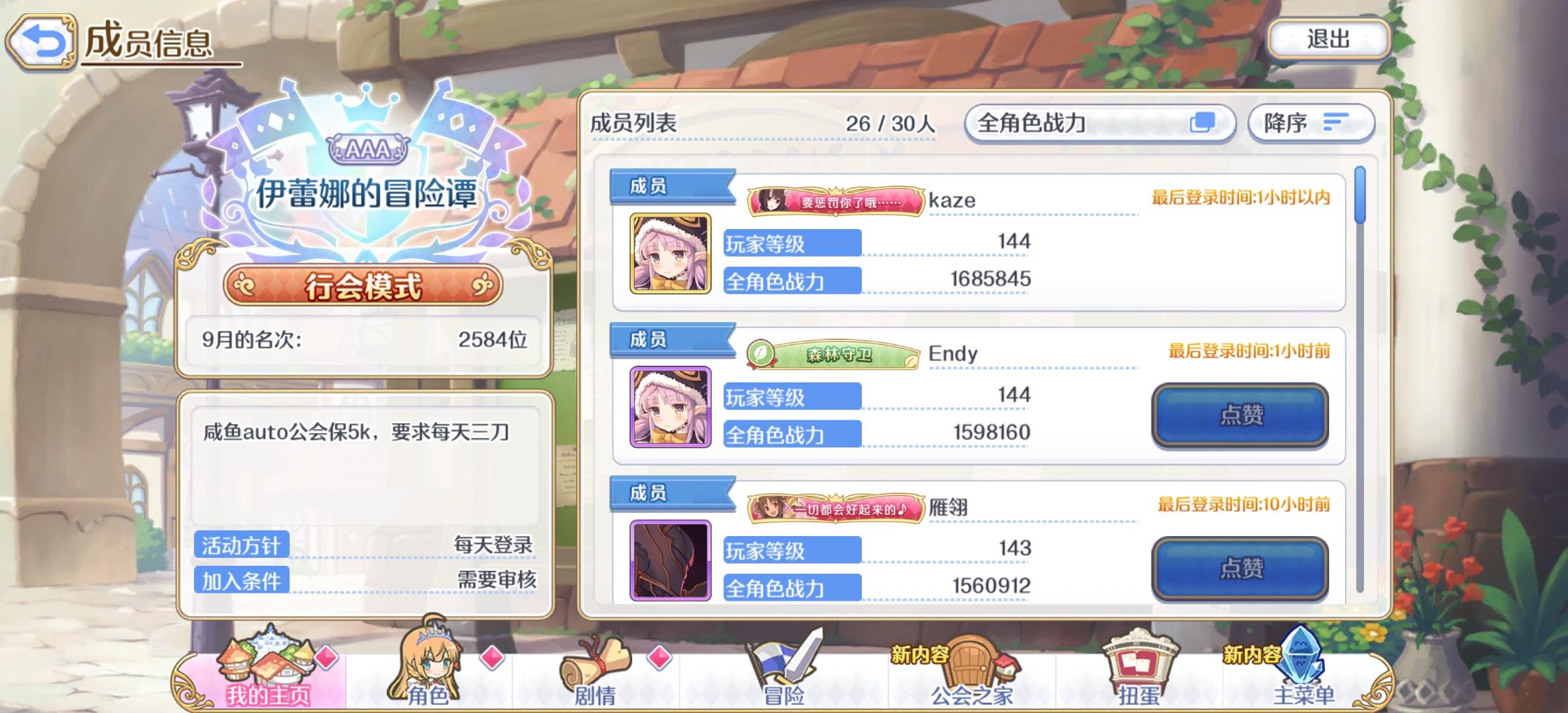 2800auto公会收1个,上一期29个人2500+,希望可以人齐打公会战啦。公会战期间每天出满三刀即可,希望来一个长期玩的小伙伴(招人真的太痛苦了)加我扣扣909283368拉你进群