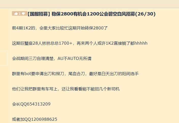 半休闲工会招人辣,要求不高自理3刀(有自选套餐),保600,招正常Box正常交流玩家,拒绝交流的自闭党就别来了. 群内都是老玩家,会战期间会有合理的出刀策略,保证轻轻松松度过会战,优先招募有会战经验的玩家,也欢迎各位对这个游戏热情的小伙伴加群瞎聊,在这内卷热潮环境中迷失了方向,不妨过来康康哈~ 群号:1085913176