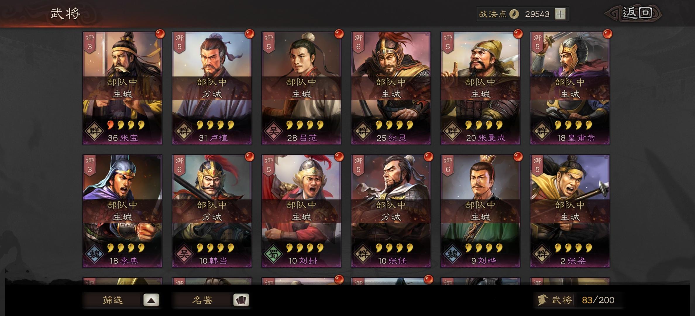 以上这些将,加上孙策孙坚 朱儁张任等紫色将大致也都有,请教可以配出主力队乃至2队吗?技能选择哪些,求指教,万分感谢