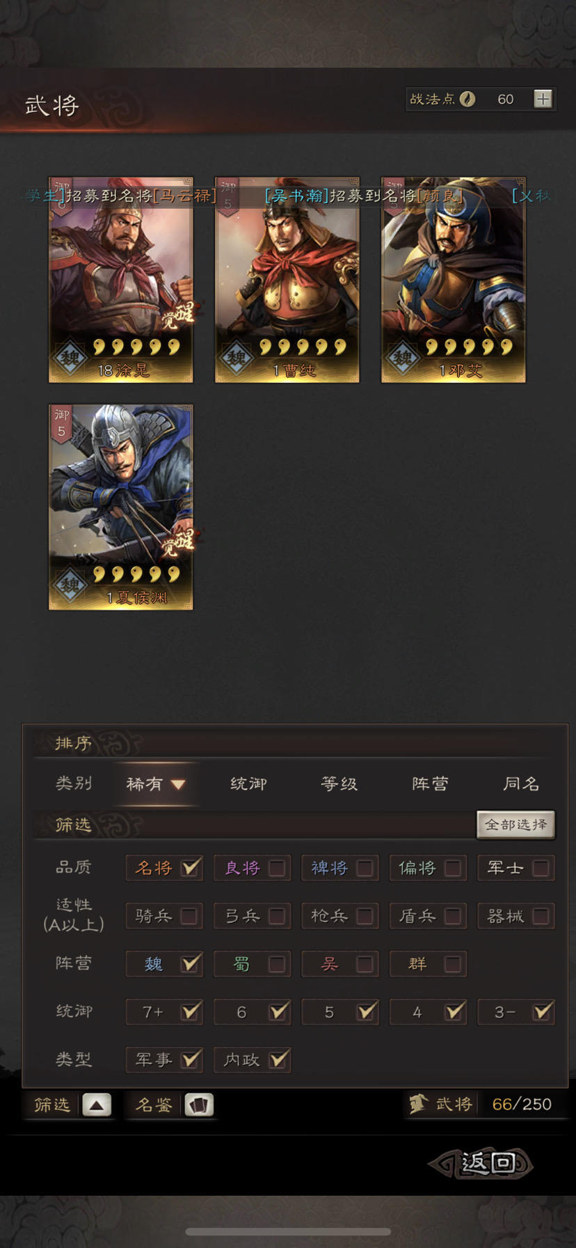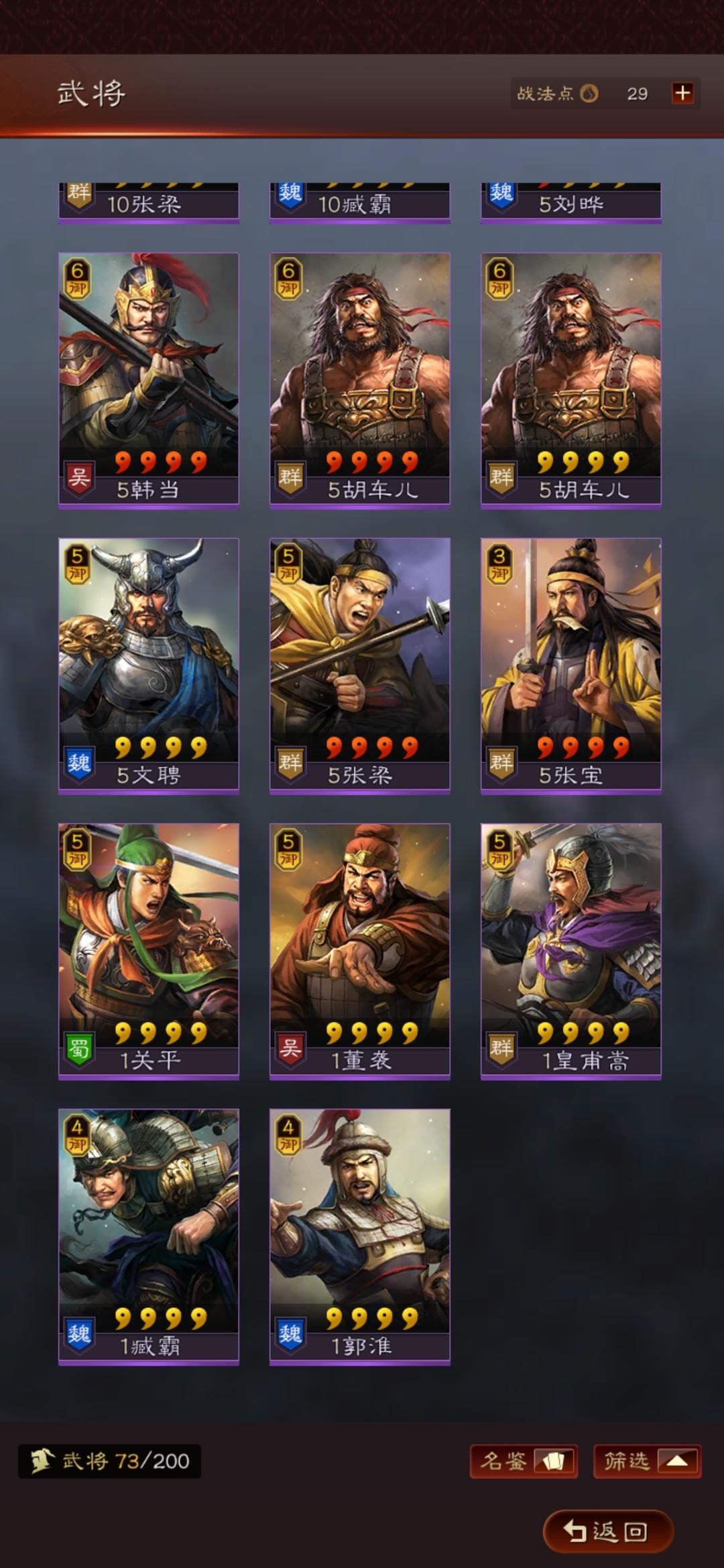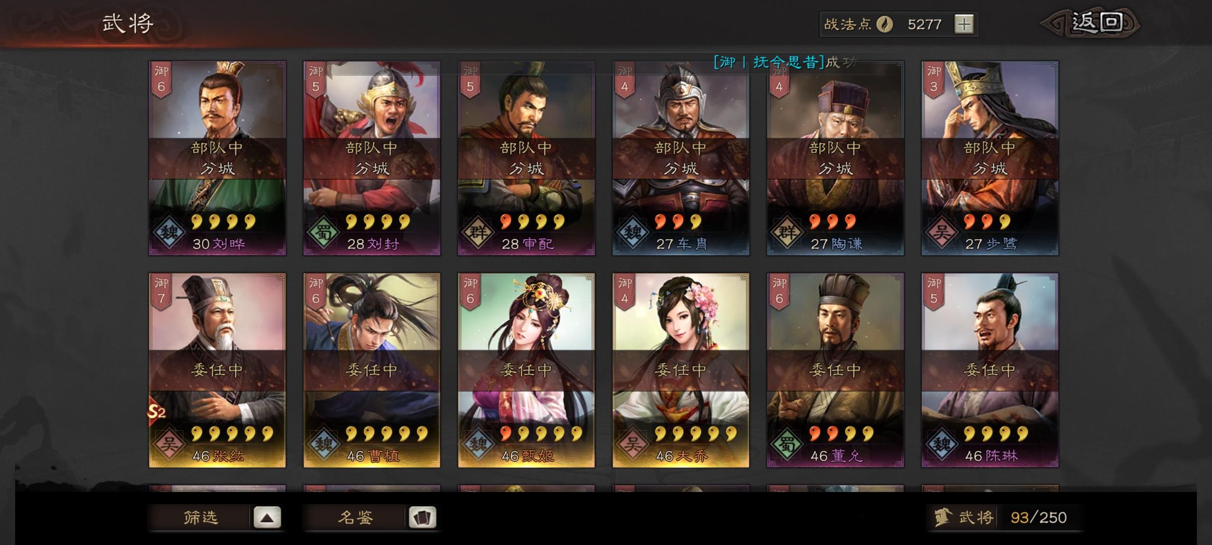 目前S2刚开区,霸业抽了庞统和香香,A级战法全,S的就只有八门,夺魄,无当。觉醒材料还有个田丰不知道能组吗?麻烦大佬们帮配下