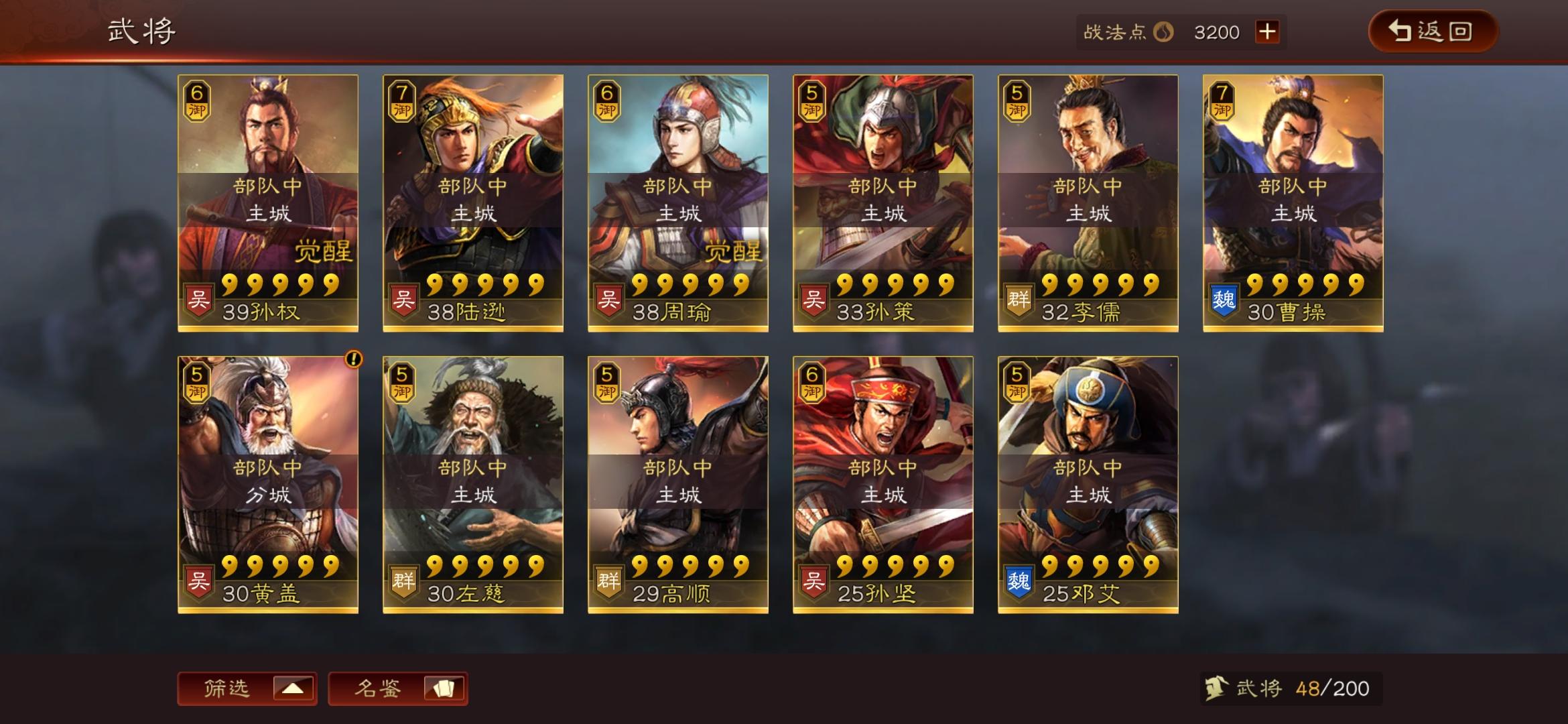 各位大佬 S1这些将怎么配 我目前是 周瑜主将 陆逊 孙权副