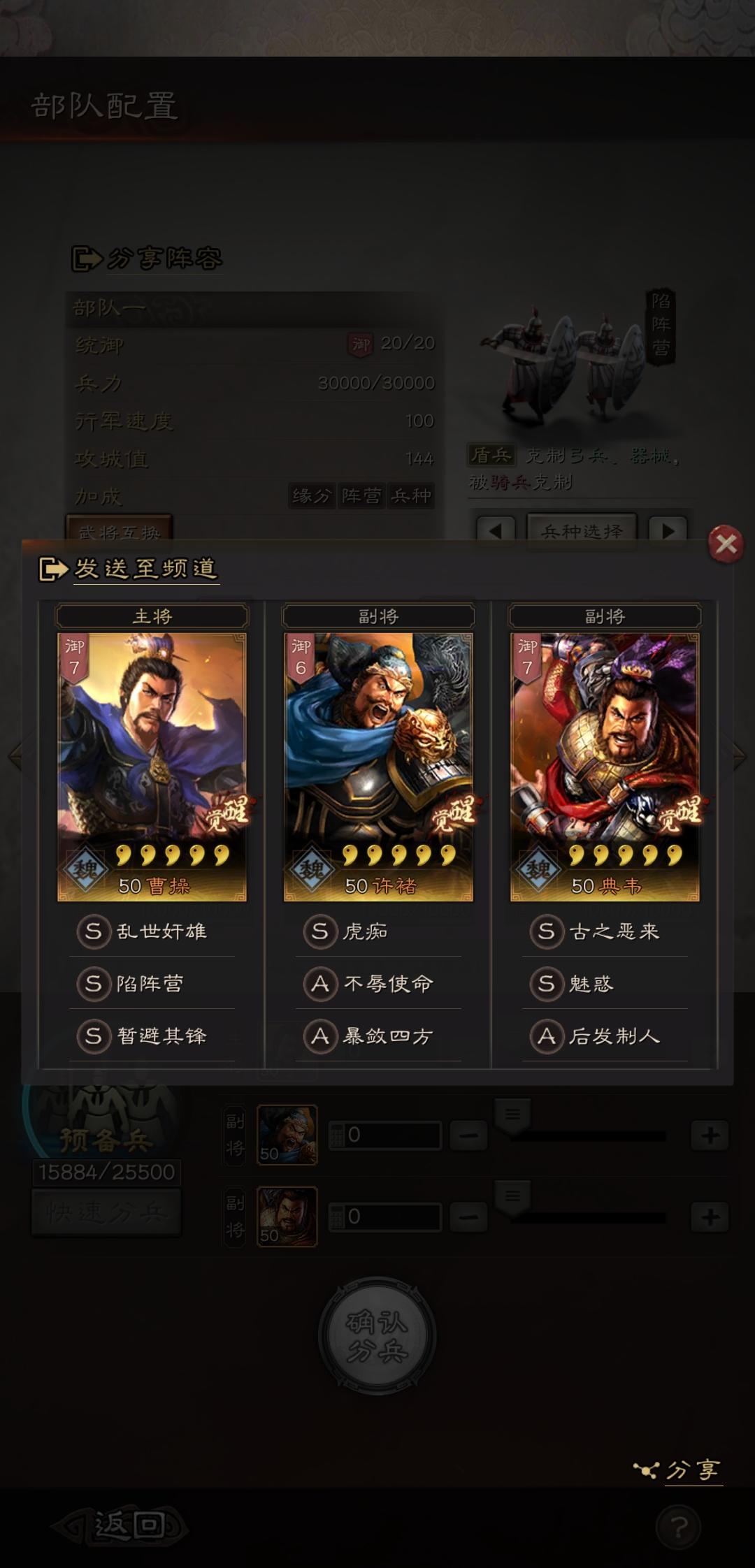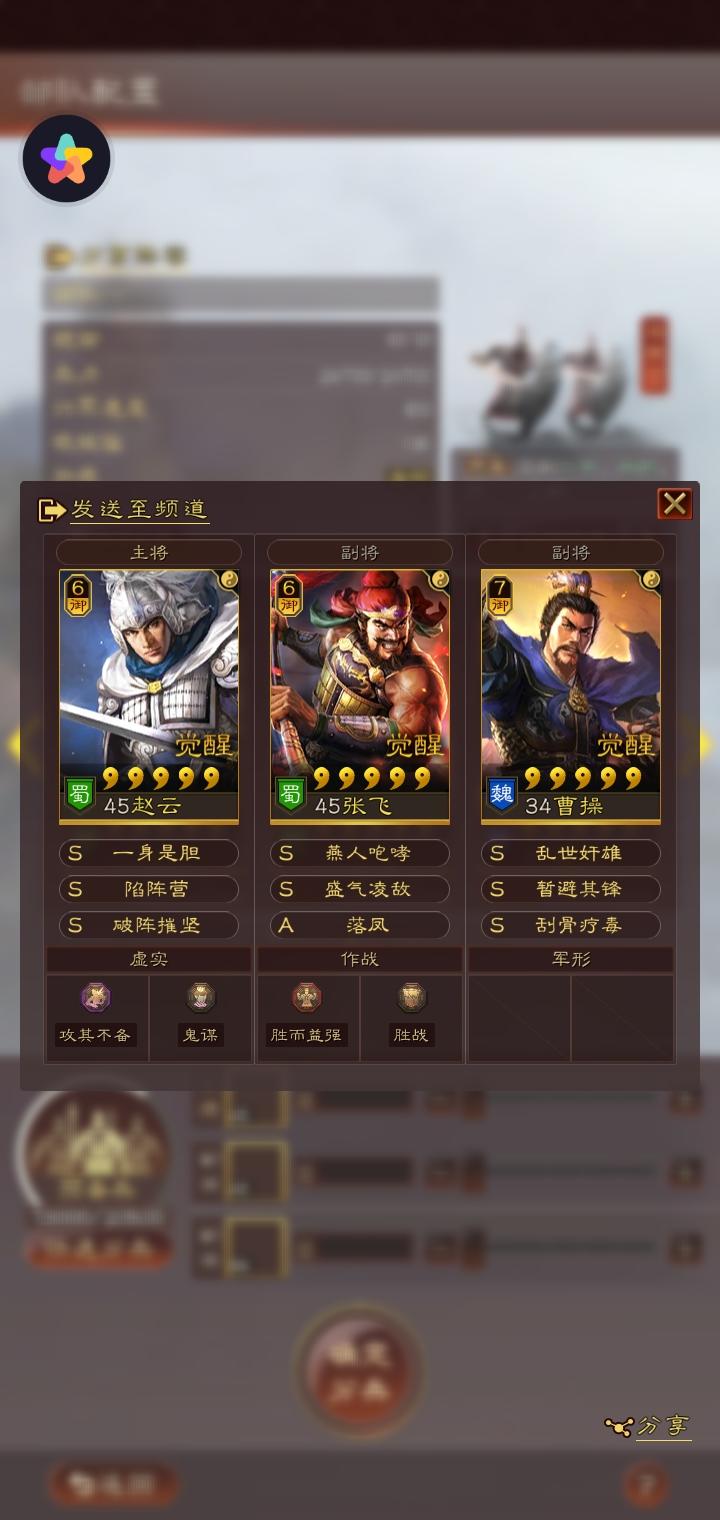 马上进s3了,请教一下怎么配阵容,用哪套开荒比较稳。主动:破阵催坚 横扫千军 万箭齐发 夺魂 刮骨 焚辎营垒 指挥:挫锐 暂避其锋 被动 :气凌三军 突击:百骑劫营 勇者得前 克敌制胜 兵种:藤甲 西凉骑 无当 阵法: 八门 锋矢阵 觉醒消耗将:黄忠 高顺 乐进 张郃 公孙瓒 内政将:张宏 司马微 曹丕 甄姬