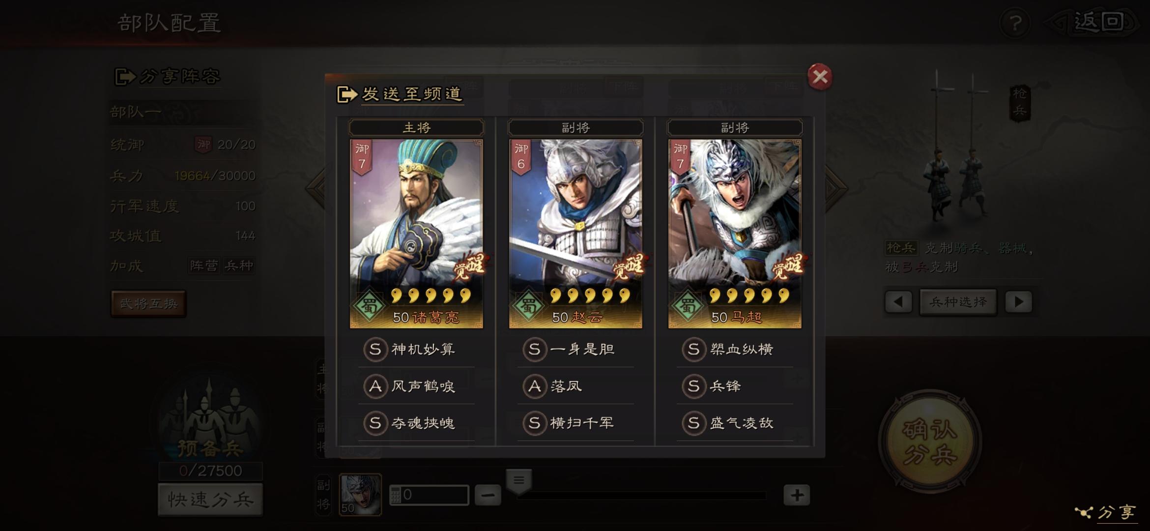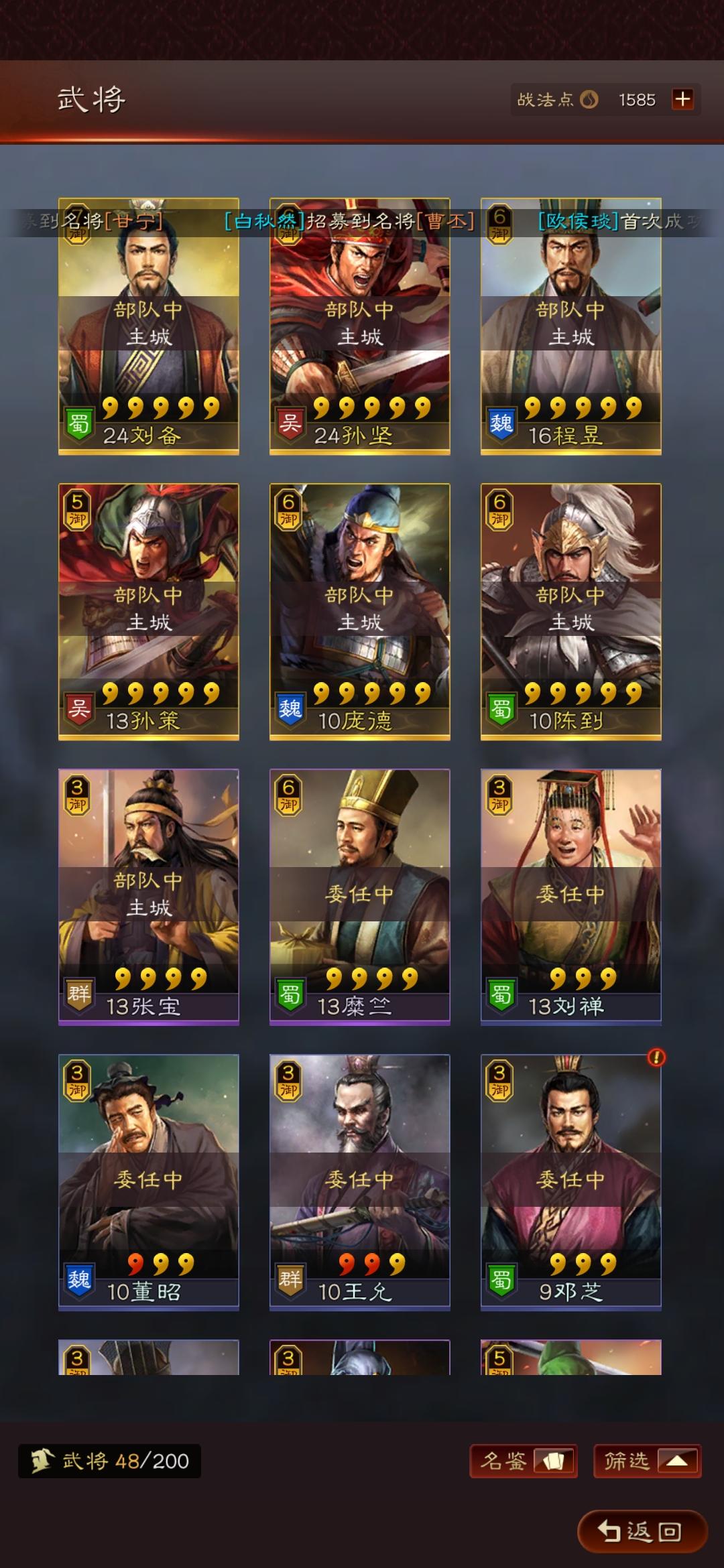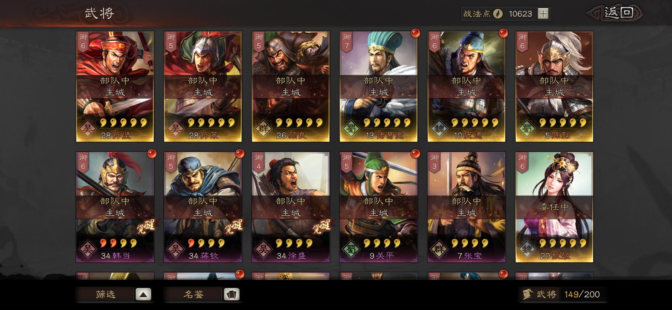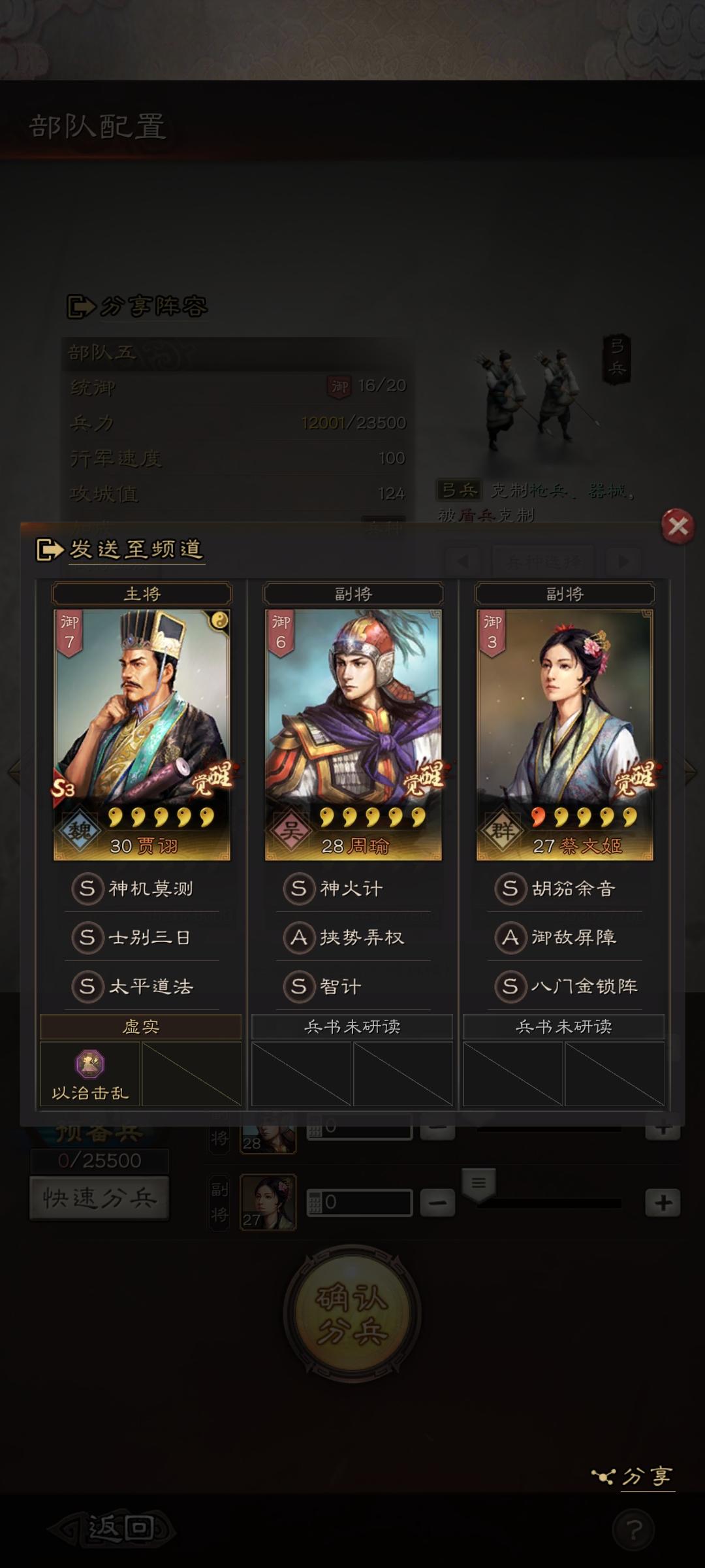 刚玩第二天,第一队有三个坑,统御值只有14,一个庞德一个孙坚就12了,要再上一个关平不够啊,怎么整