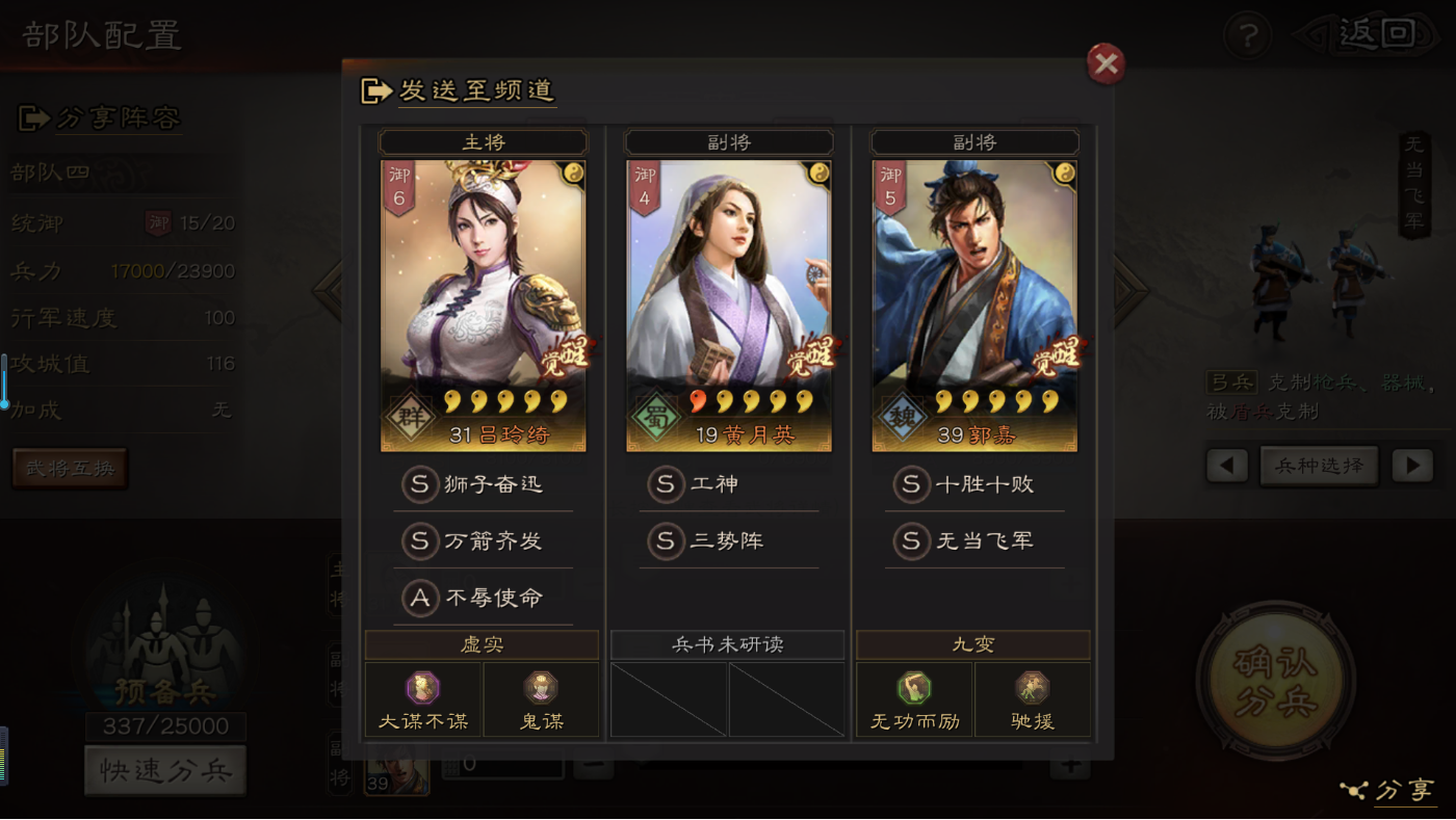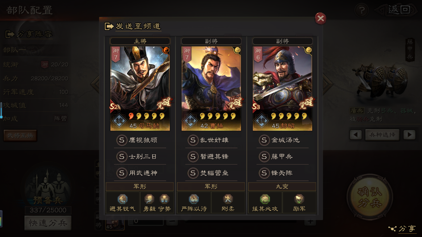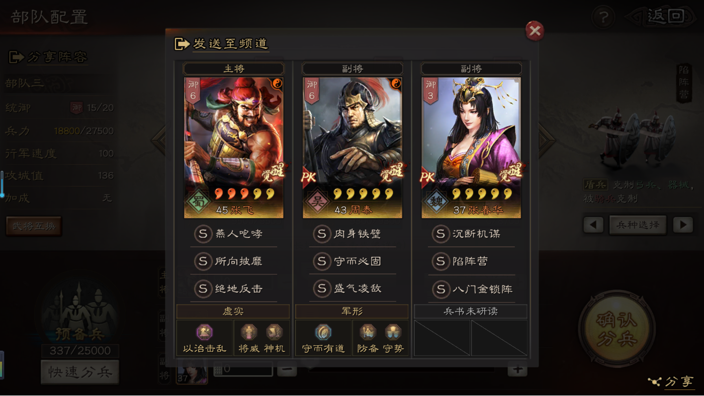 大神给个指导吧!关羽,赵云,黄忠,刘备怎么组一队?技能A级都有了S级有,暂避其锋,破阵催坚,锋矢阵,盛气凌敌