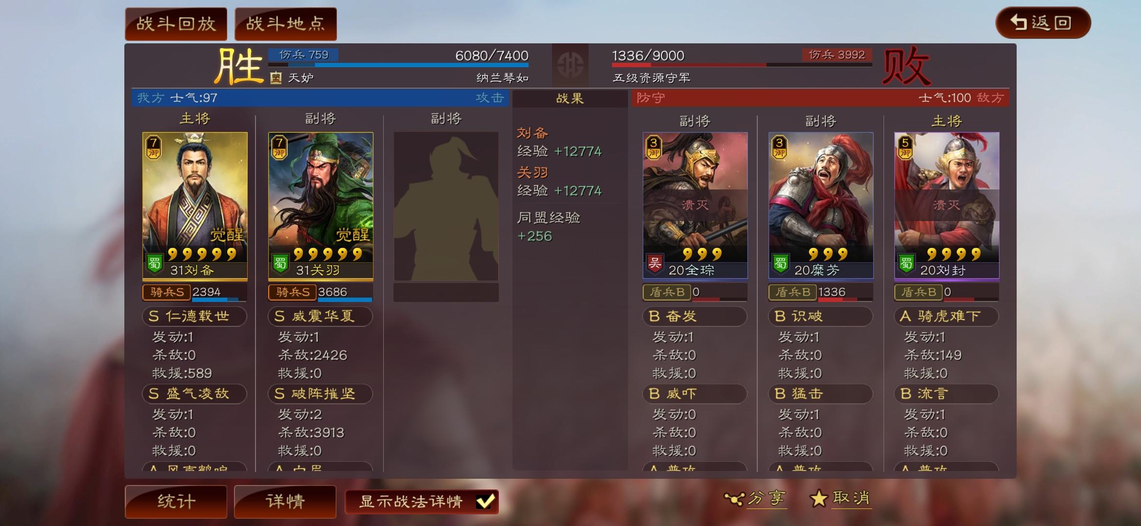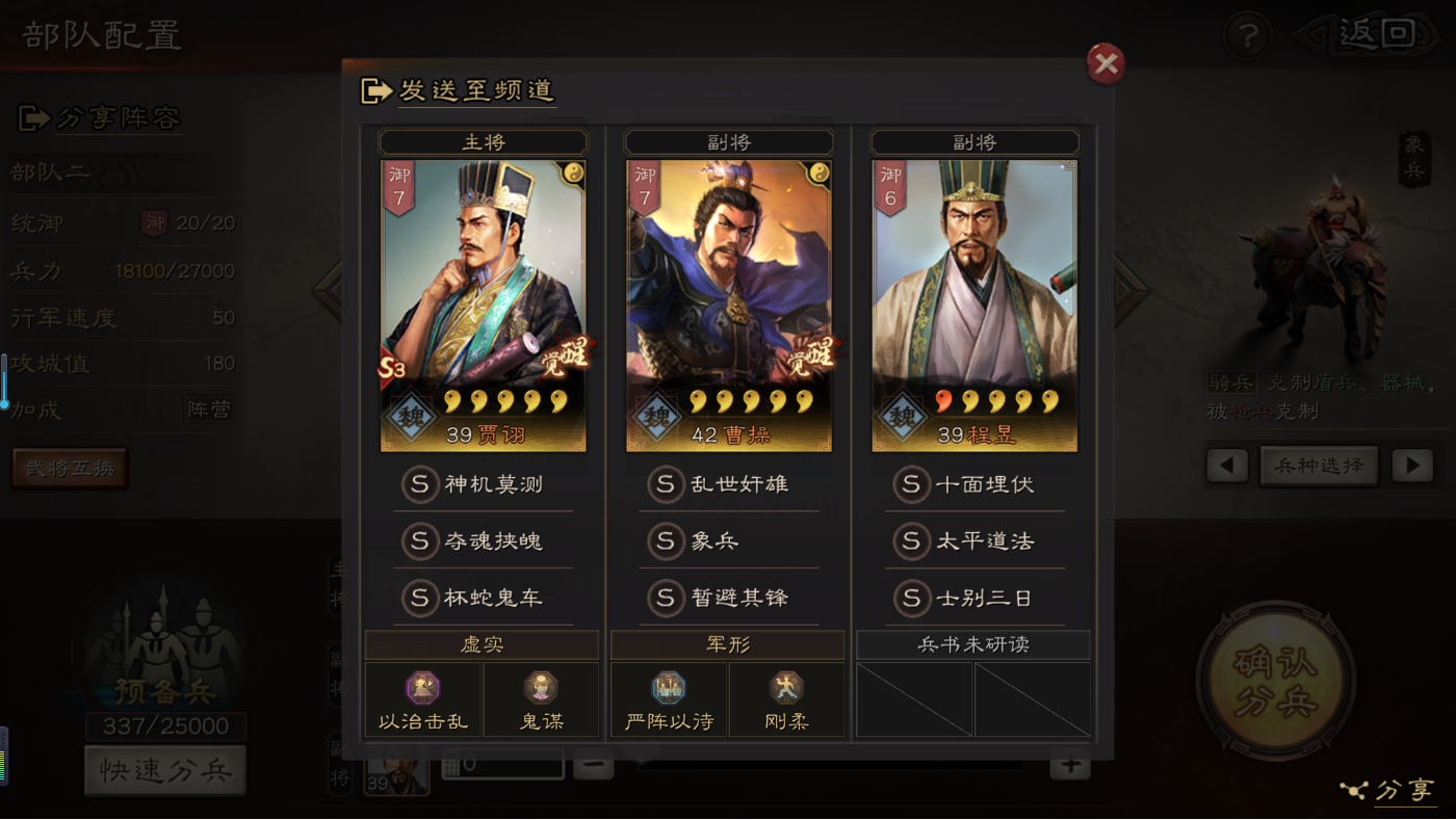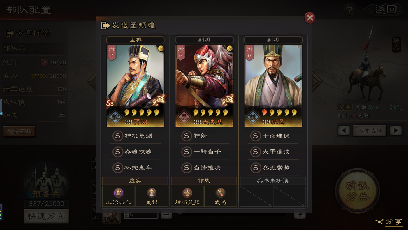 大神给个指导吧!关羽,赵云,黄忠,刘备怎么组一队?技能A级都有了S级有,暂避其锋,破阵催坚,锋矢阵,盛气凌敌
