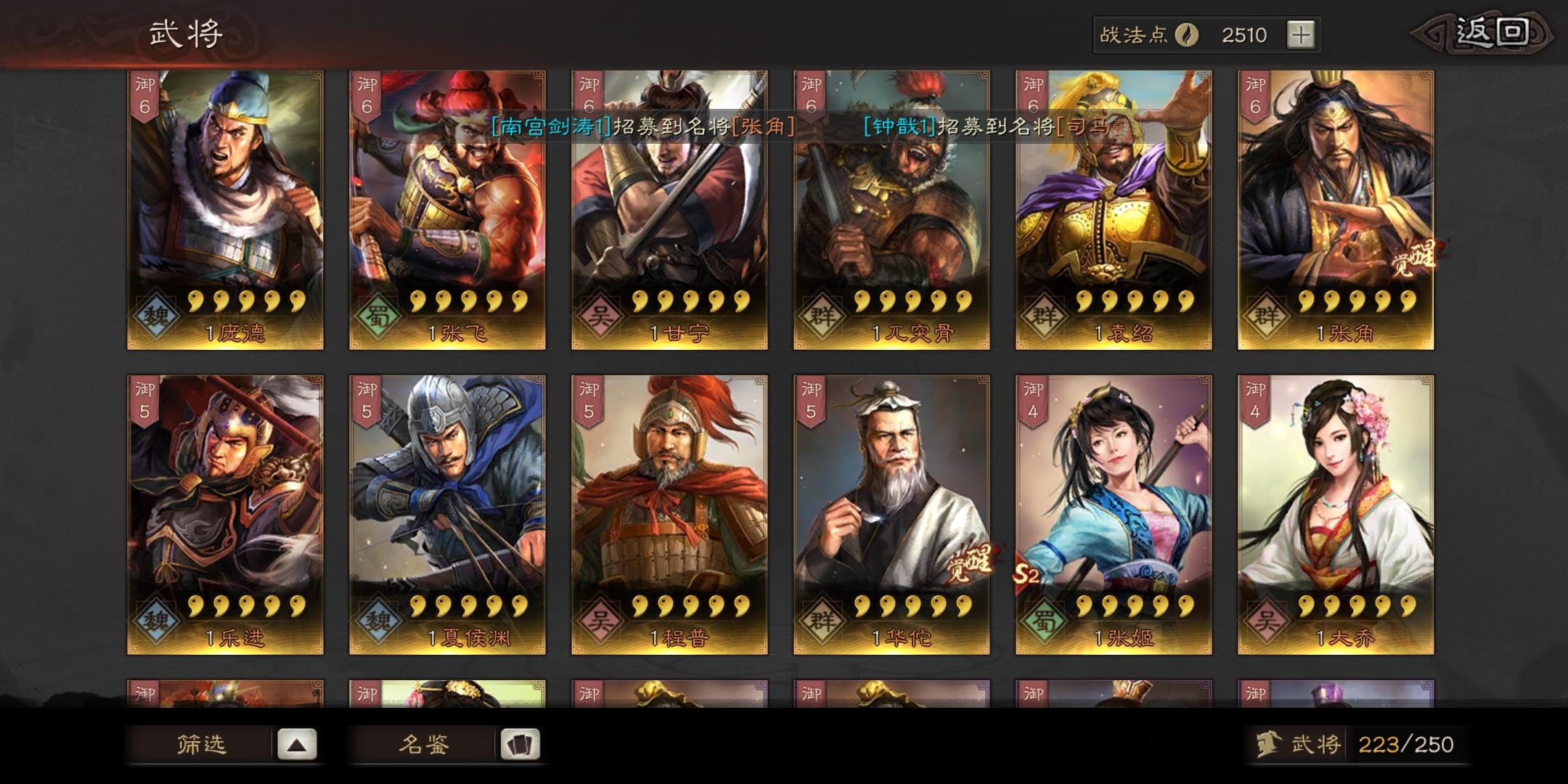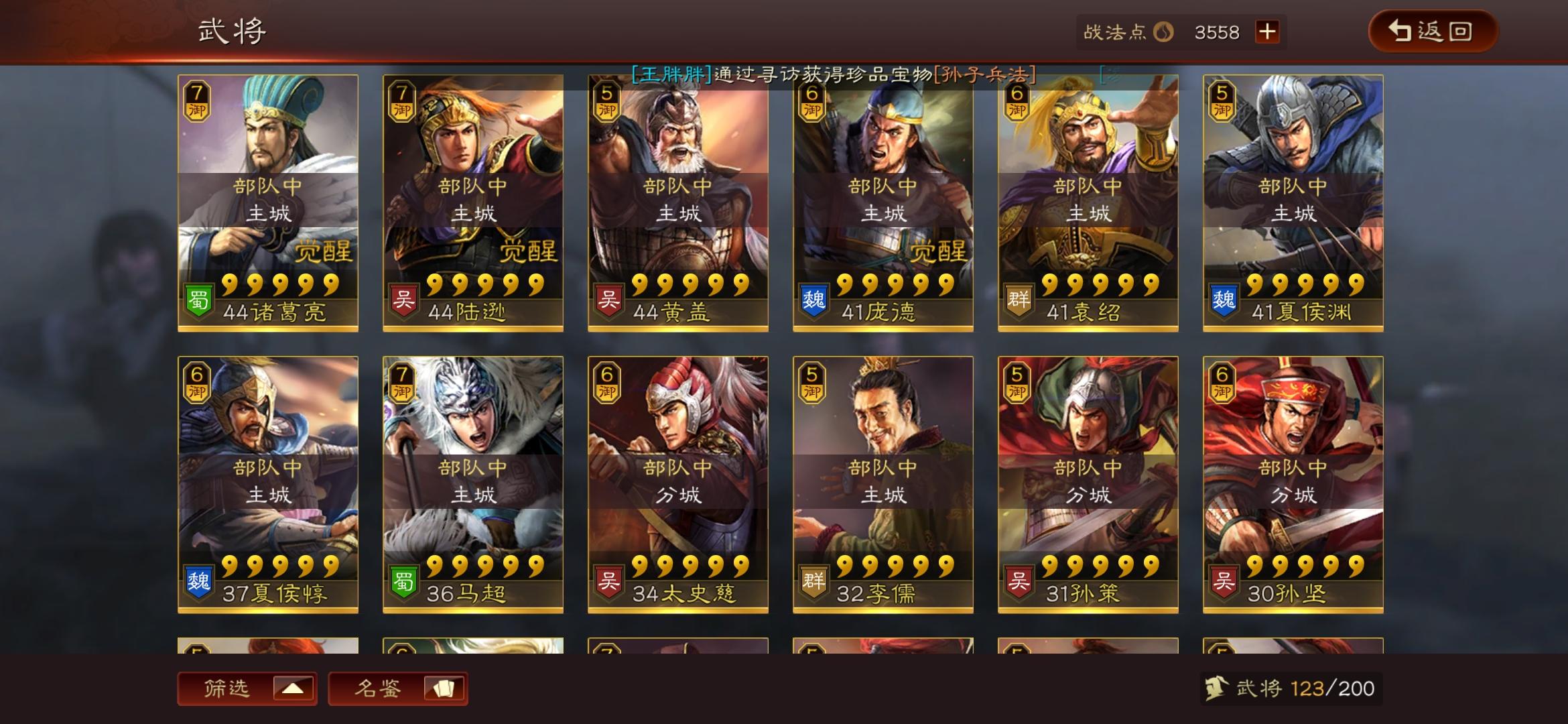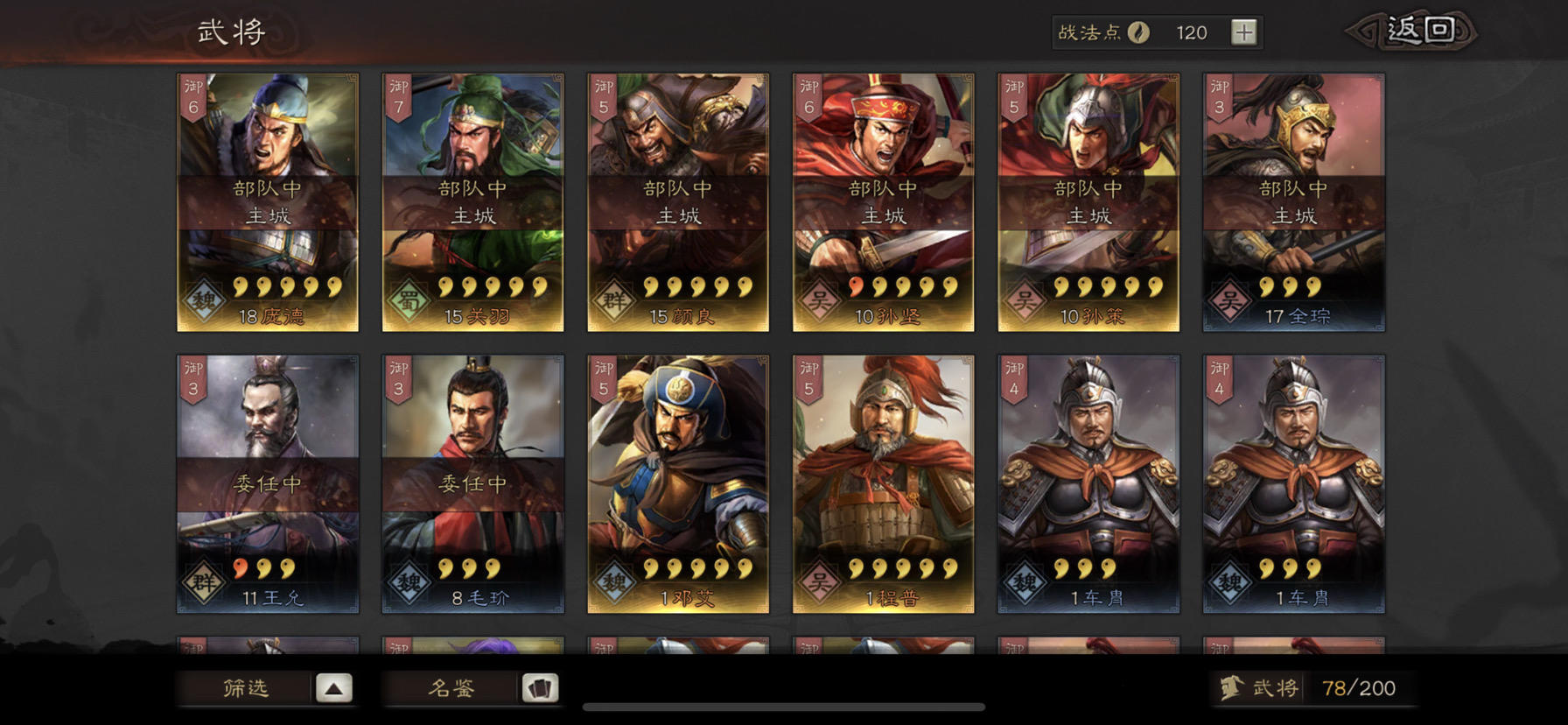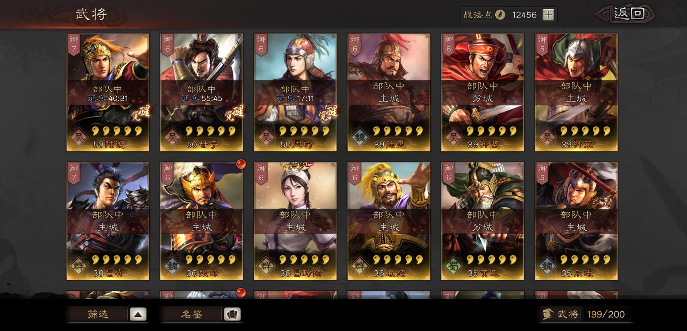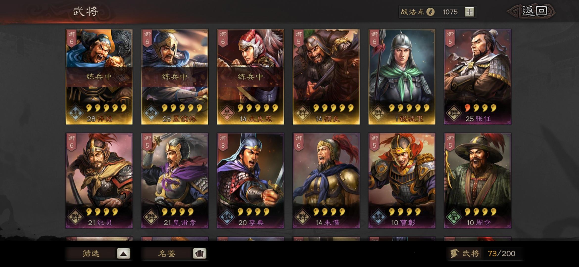 大佬们,我这些武将能不能整几套阵容来啊,紫将几乎全都有